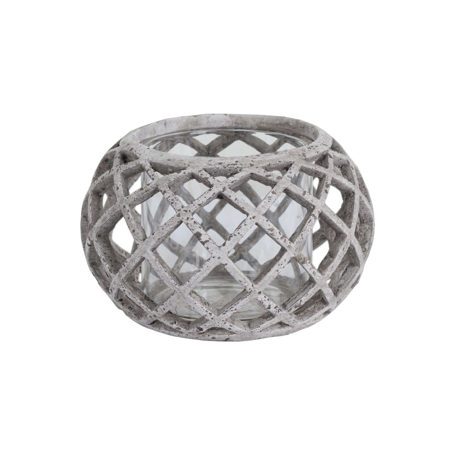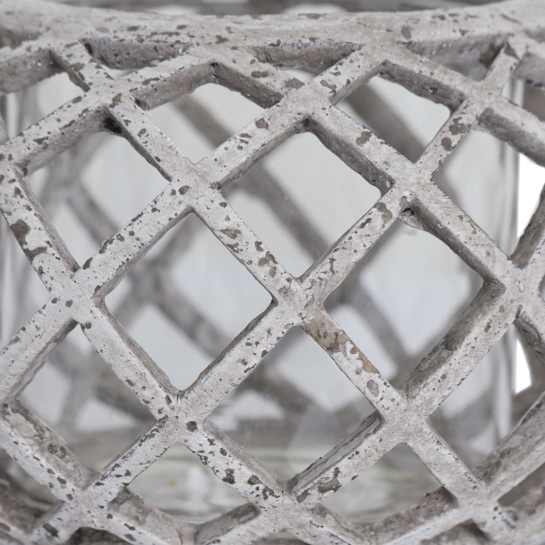 Round Ceramic Lattice Hurricane Lantern - Stone
