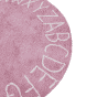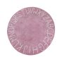 Elevate your child's learning space with this vibrant handmade cotton round rug featuring an embroidered alphabet. Perfect for kids' rooms, it adds a playful touch while encouraging early literacy skills. Crafted with care and safe for floor heating, it offers both style and comfort for endless educational adventures. Details: Color: Pink, White. Main material: Cotton. Material Composition: 100% Cotton Weight: 1.4 Assembly: Does Not Require Assembly