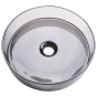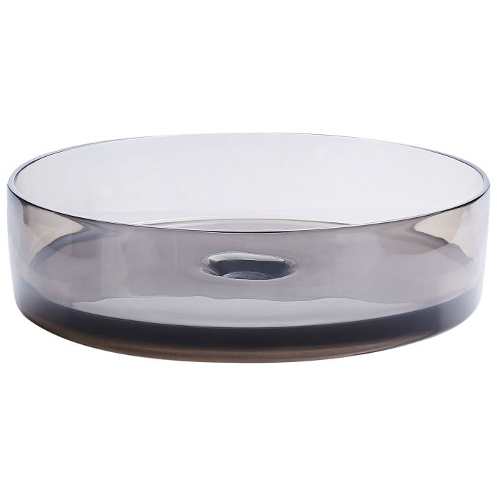 Exuding an aura of sophisticated style, this semi-transparent round wash basin, crafted from solid surface, epitomizes modernity and elegance. Its sleek design, complemented by a subtle infusion of colour, lends a touch of contemporary allure, ideal for elevating the aesthetics of any bathroom. It also imparts a sense of spaciousness and airiness to bathroom cabinets. The included pop-up drainer offers a convenient solution for effortless water drainage, allowing for easy cleaning and maintenance. Details: Color: Transparent, Black. Main material: Solid Surface. Additional material: Copper. Weight: 5 Assembly: Requires Installation