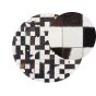 A round rug made of multiple square pieces sewn together. The stylish classic-coloured piece is suitable for any décor whether to complement other interior details or as a standalone item. Made of durable cowhide leather, the rug is soft to walk on and will last for years of daily usage. Details: Color: Black, White. Main material: Cowhide Leather. Material Composition: 100% Real Leather Weight: 4 Assembly: Does Not Require Assembly