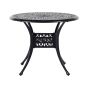 Take the most of the warm and sunny summer days and give your outdoors an upgrade thanks to this lovely garden table. Made from lightweight yet robust aluminium, they boast curvaceous patterns which add an elegant, vintage touch to any setting. Its wide, round top provides enough space for comfortable dining for a party of four. Details: Color: Black, Beige. Main material: Aluminium. Additional material: Aluminium. Weight: 12.5 Capacity: 4 People Assembly: Full Assembly Required Weight Capacity: 150 Legs Height: 72