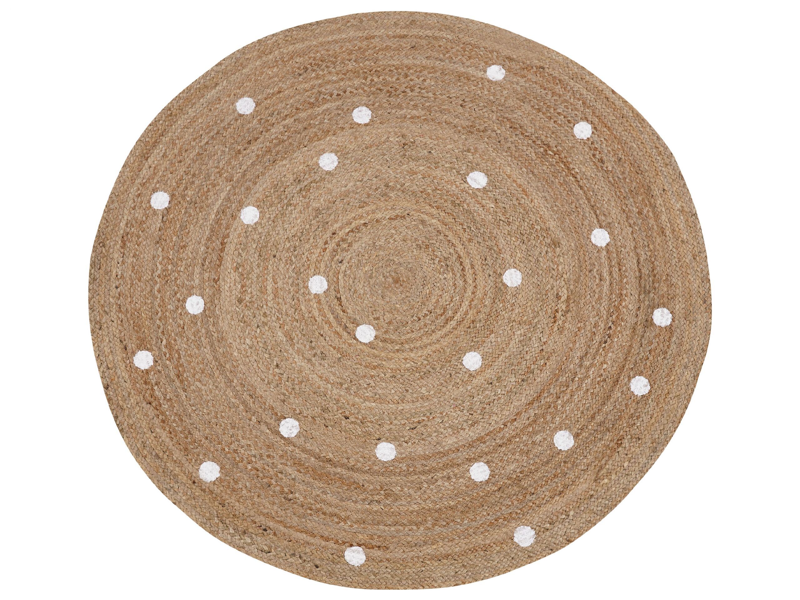 A suitable choice for every modern home, this jute rug thanks to its neutral shade complements all colour schemes. Featuring a plain design highlighted just by white dots, it is easy to style within any interior. The rug is made from jute, bringing home a natural touch. Details: Color: Beige, White. Main material: Jute. Material Composition: 100% Cotton Weight: 3