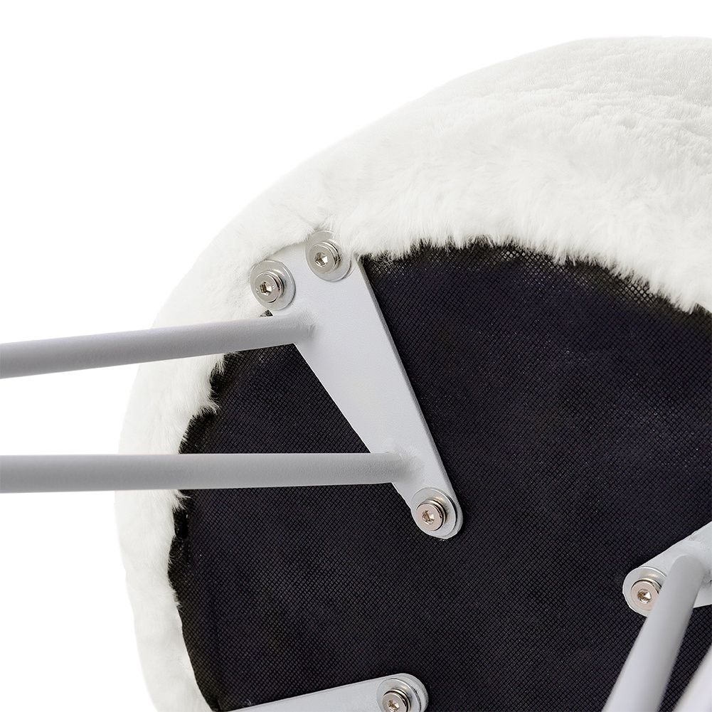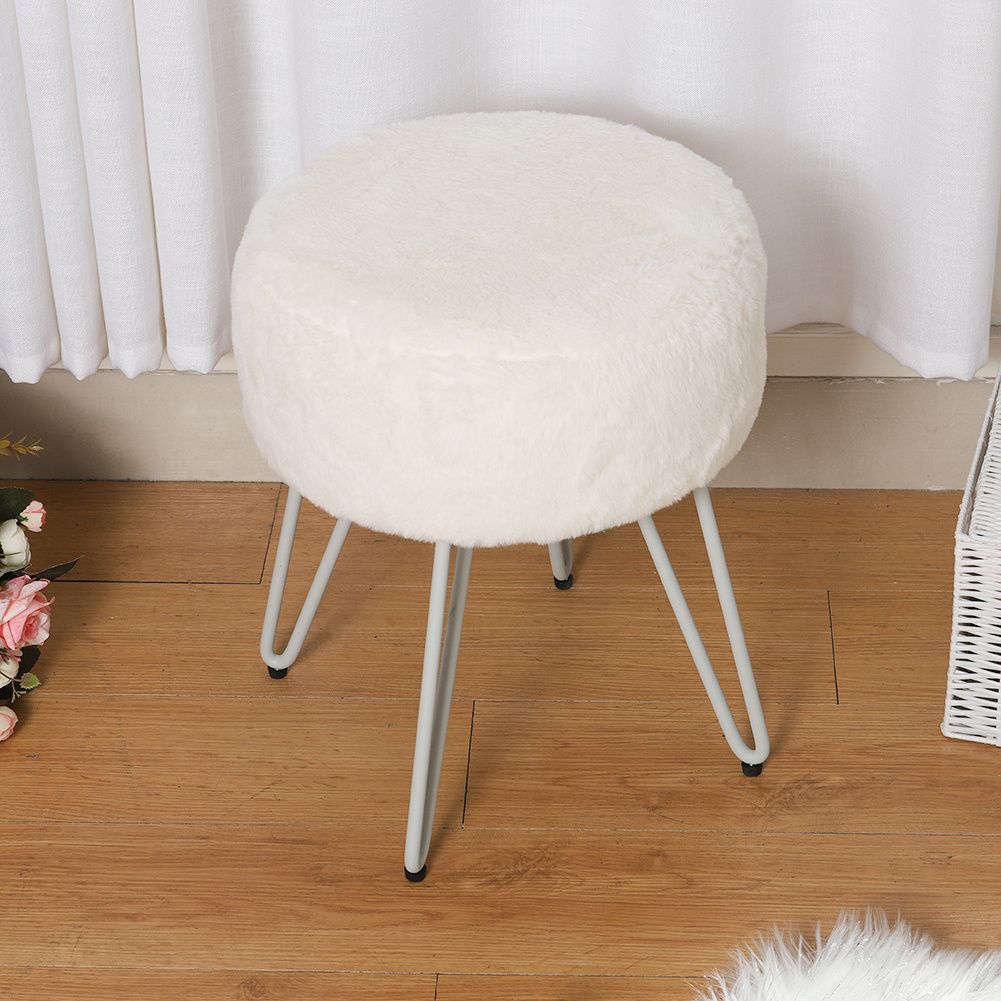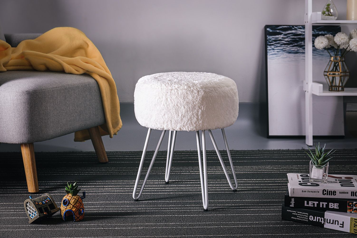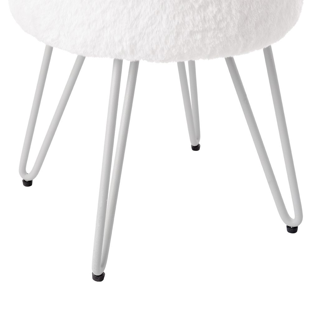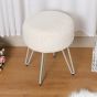 Round Soft Plush Footstool With V-shaped Metal Legs White