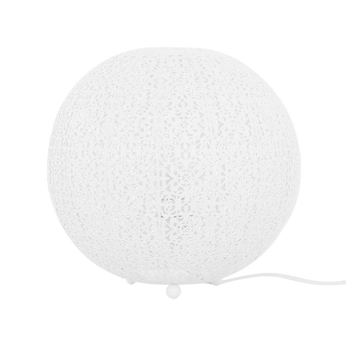 This spherical table-lamp features a vintage design of decorative, oriental style openwork. The delicate design diffuses light subtly into the room, adding ambience and functioning as additional lighting. Not overpowering, it is ideal on a bedside table or in the living room, for evening reading or watching TV. Details: Color: White. Main material: Metal. Weight: 2 Assembly: Partial Assembly Required