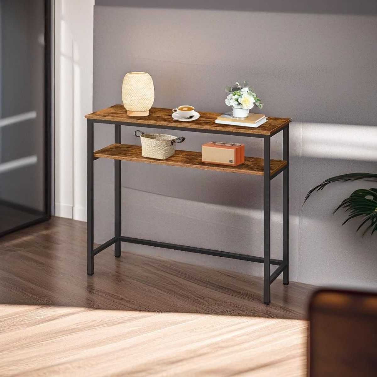 ROVESTA Console Table Slim Table with Adjustable Shelf - Rustic Brown