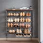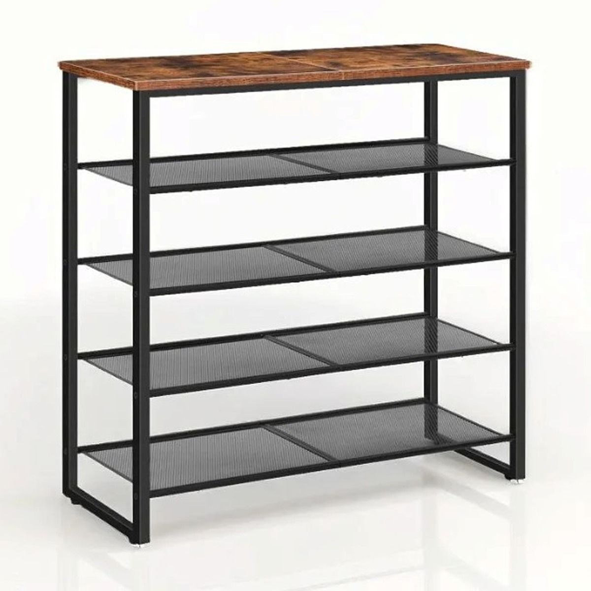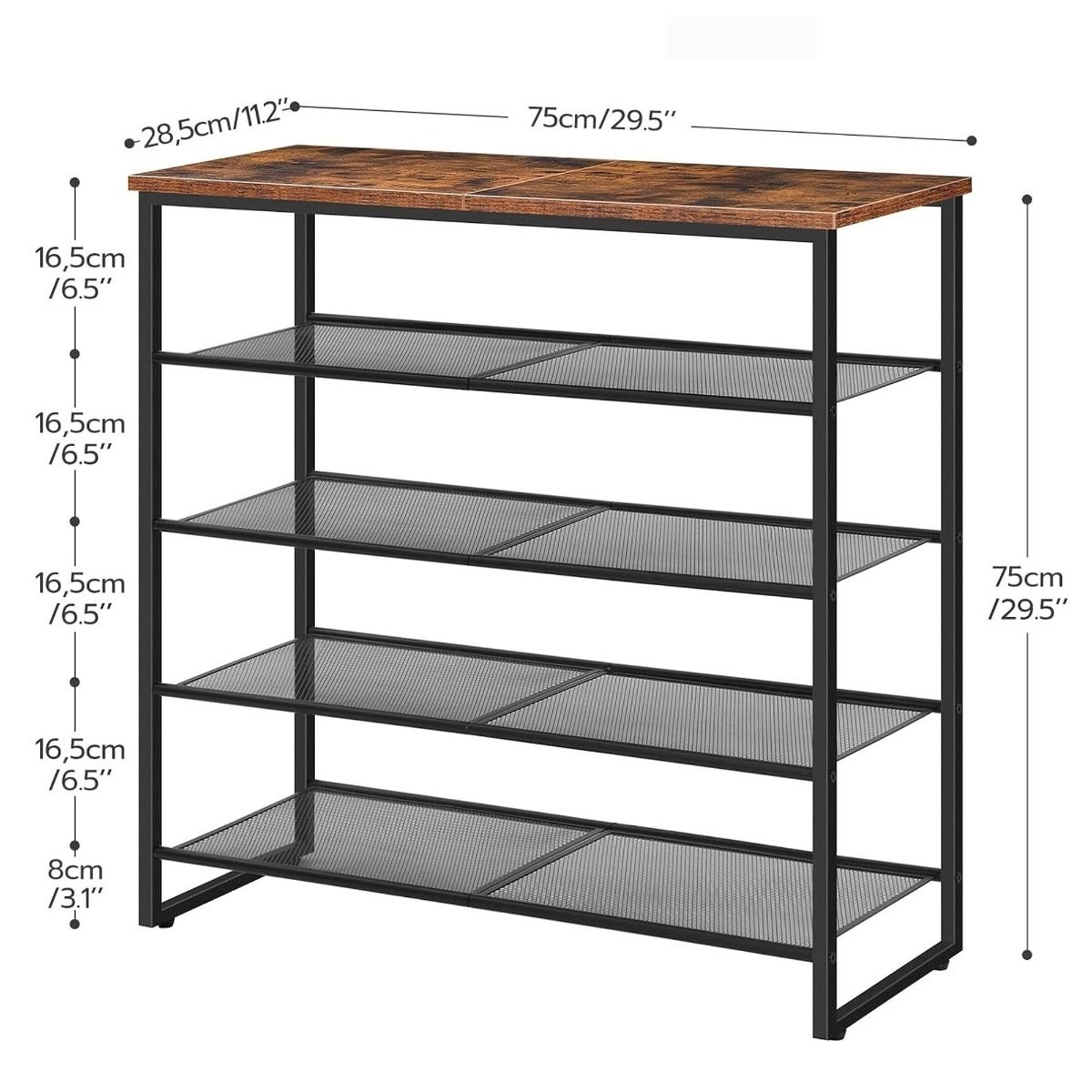 ROVESTA Multi-Layer Shoe Rack with Mesh Shelves - Rustic Brown and Black