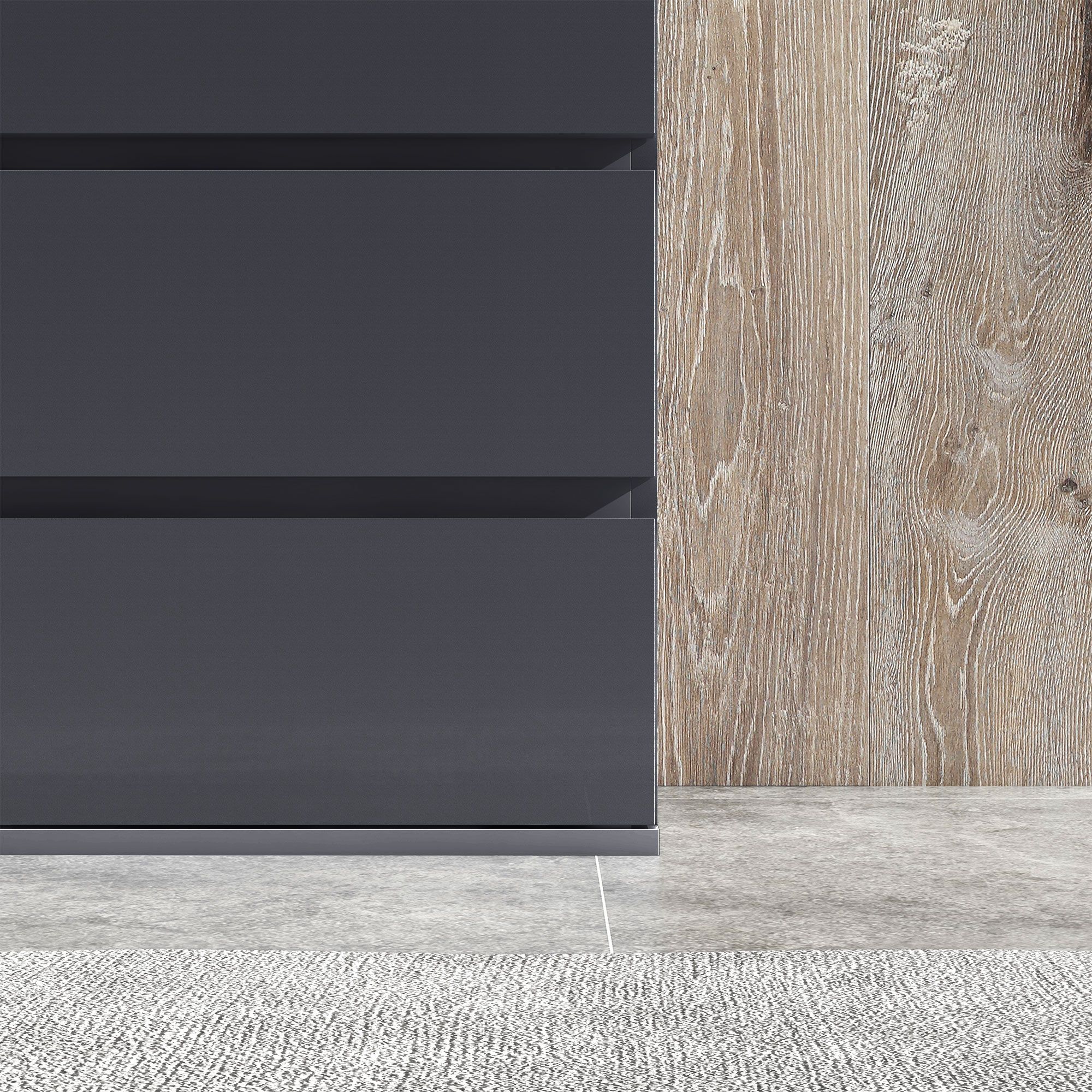 ROWAN Grey Chest of Drawers - Tallboy, Medium-sized, High Gloss Finish, 5 Drawers