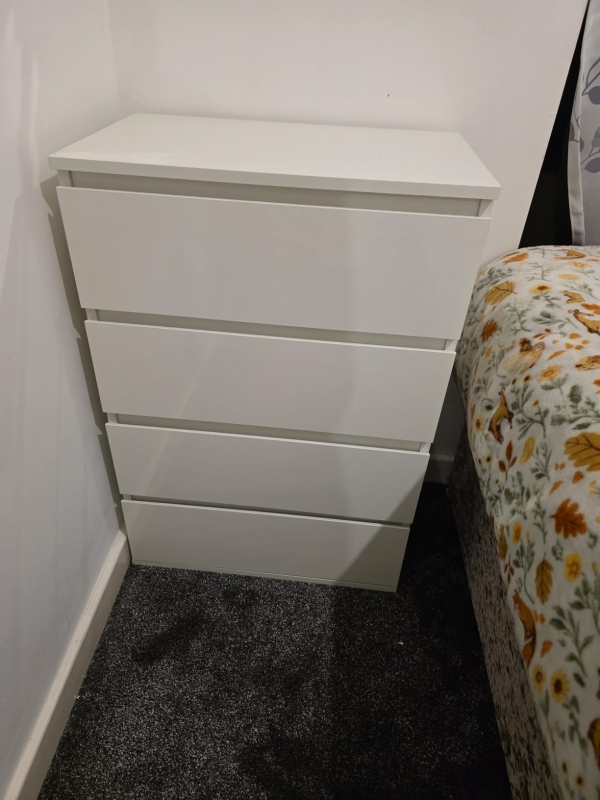 ROWAN White Chest of Drawers - Medium-sized, High Gloss Finish, 4 Drawers
