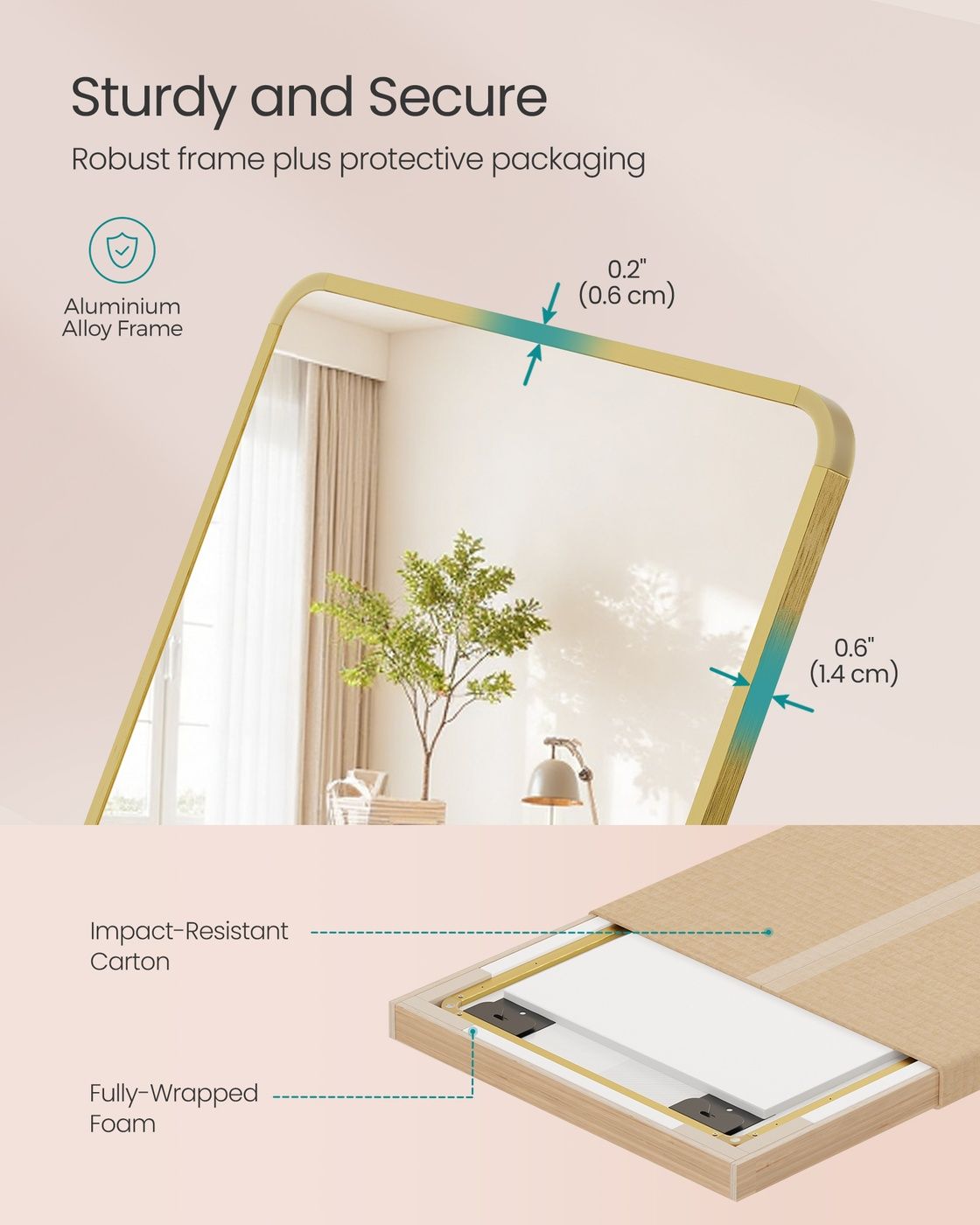 ROWANSHIRE Arched Full Length Mirror for Over the Door and Wall Mounting - Gold