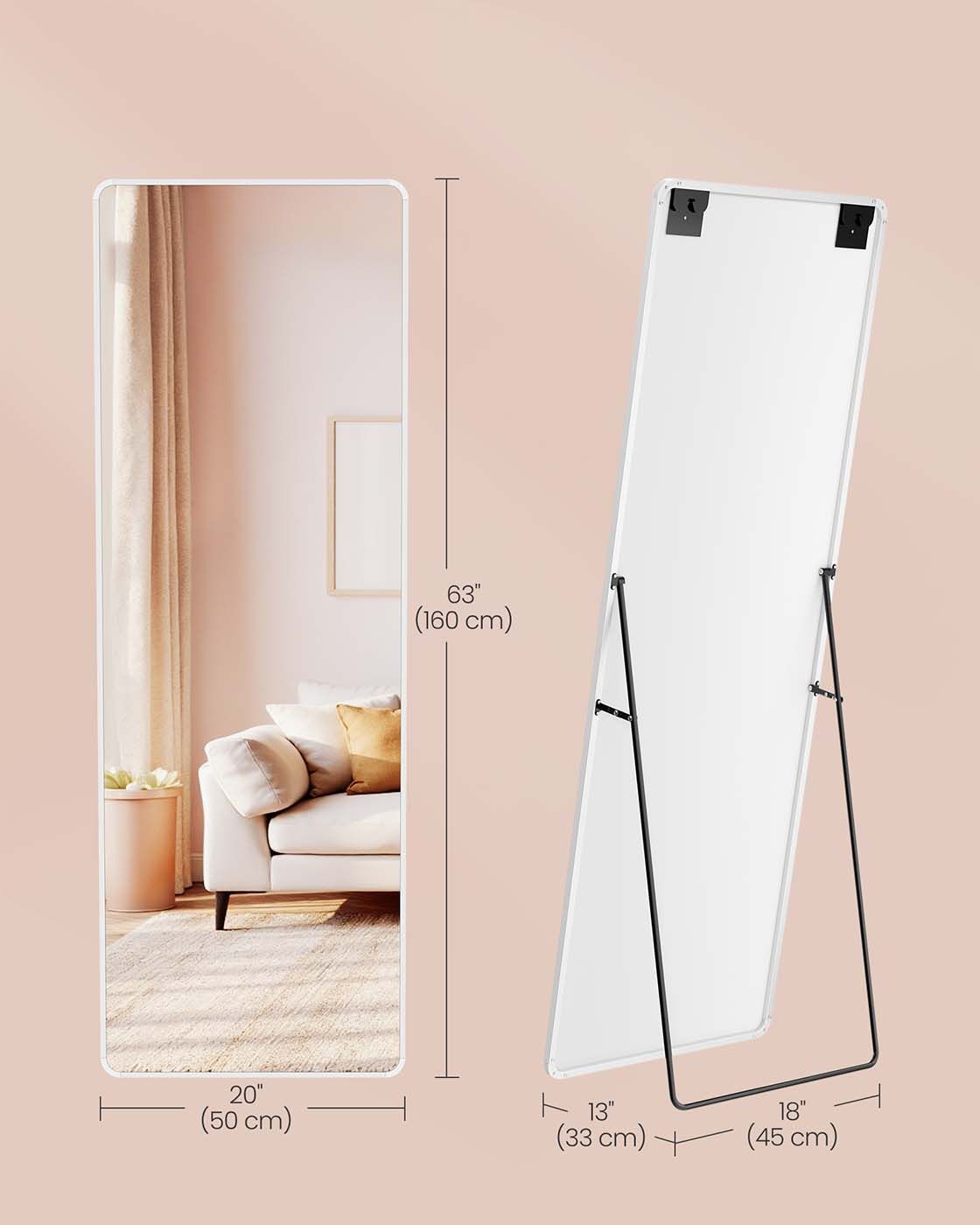 ROWANSHIRE Rectangle Full Length Mirror with Stand - White