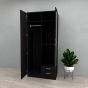 ROWASA 2 Door Mirrored Wardrobe with 2 Drawers Black - 90cm