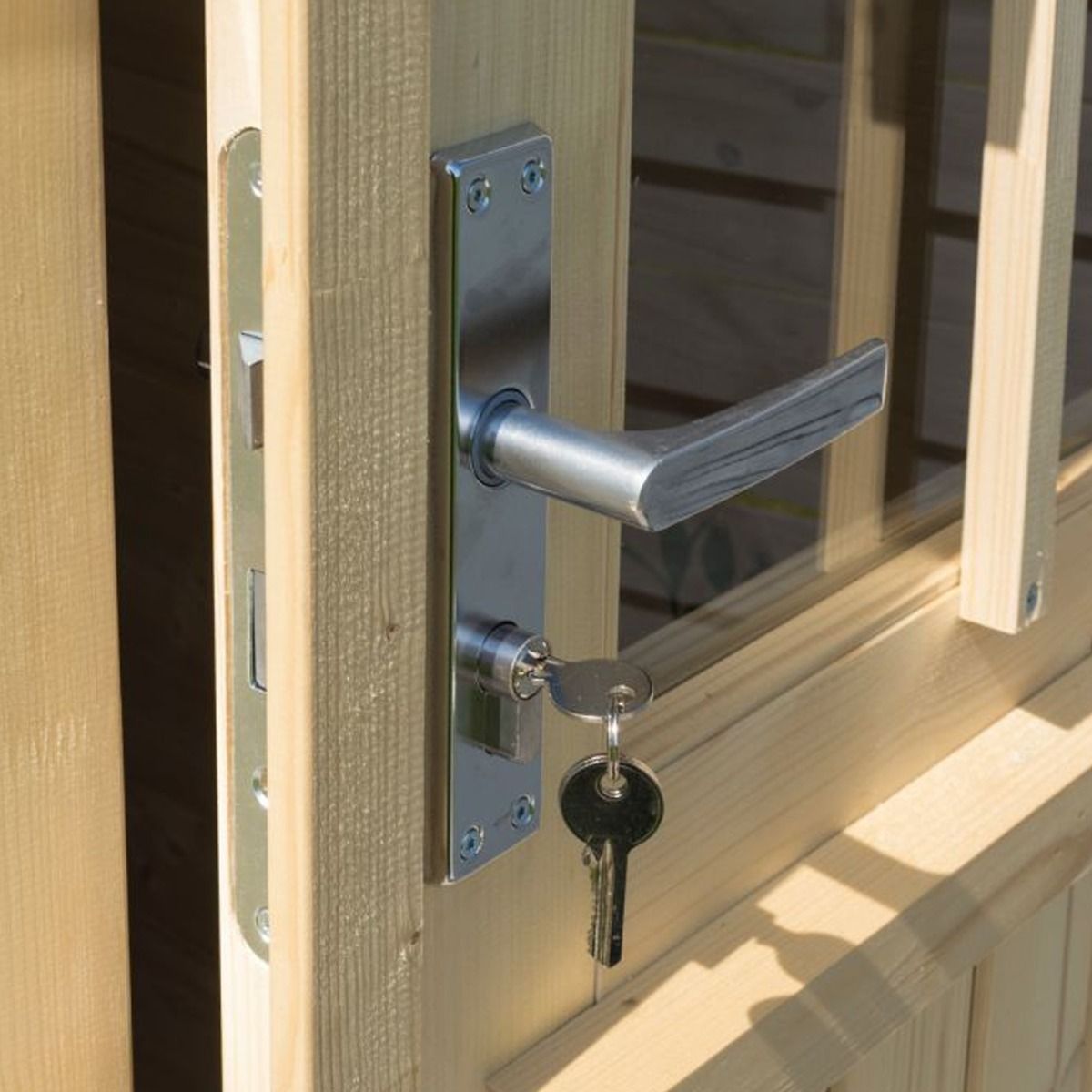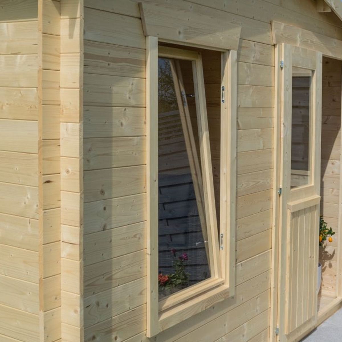 Rowlinson Timber Log Cabin Interlocking Walls with Tilt Windows and Double Doors