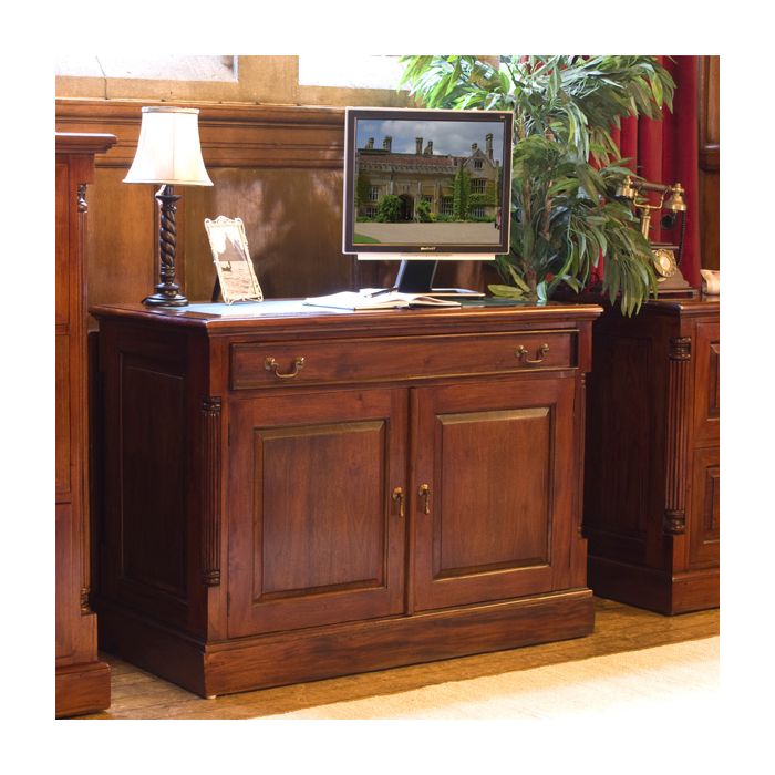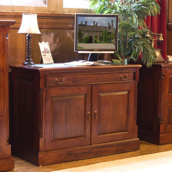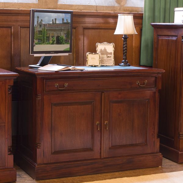 Royston 2 Door Computer Table With Keyboard Drawer and Antiqued Brass Handles - Mahogany Finish