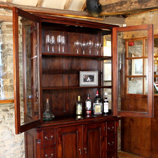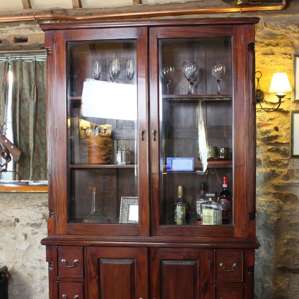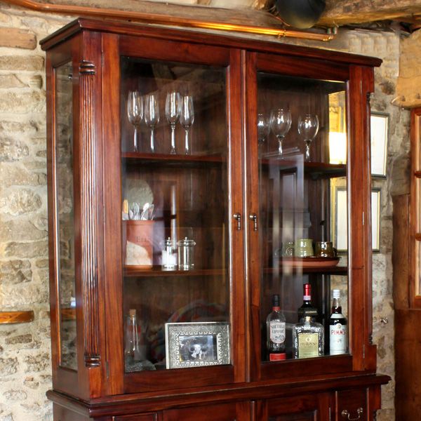 Royston Glazed Dresser Hutch Top with Tear Drop Handles - Mahogany Finish