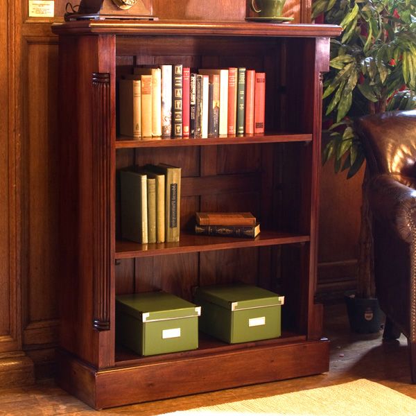 Royston Low Height Bookcase with Two Adjustable Shelves - Mahogany Finish