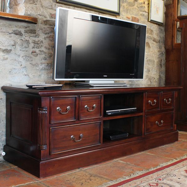 Introducing the distinguished 'Royston' Mahogany furniture collection, where timeless elegance meets exceptional craftsmanship. Each piece, like this television cabinet, is meticulously handcrafted from solid Mahogany and finished with a mid-gloss lacquer, ensuring durability while preserving the wood's innate beauty. With classic designs infused with a contemporary edge,