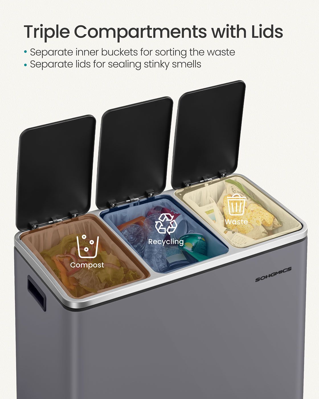 Rubbish Bin - SOLNA 3 x 18L with 15 Liners Included Matte Grey
