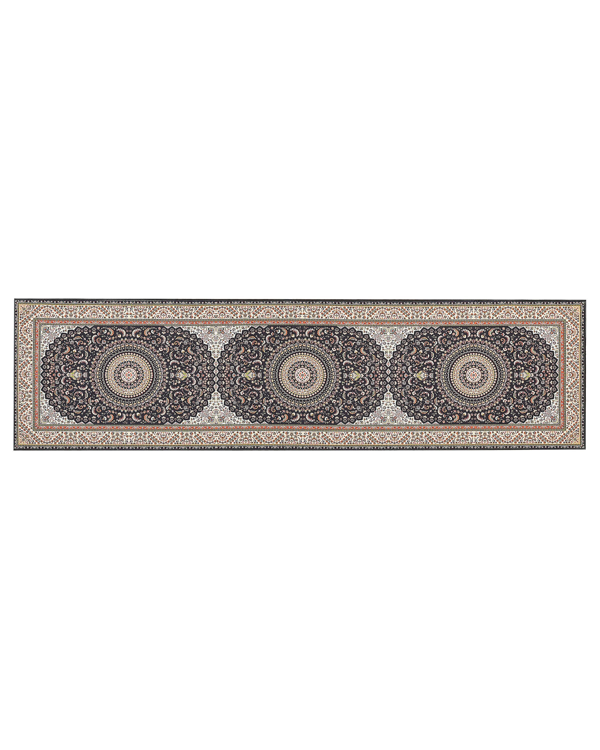 Pick this captivating ornament to enrich your home decor. Made from resilient polyester fabric, this runner rug presents an enchanting oriental-inspired pattern, infusing your environment with vintage charisma and harmonizing seamlessly with an array of decor aesthetics. Produced with an anti-slip foundation, it's well-suited for areas like hallways and versatile for dining area embellishments. Details: Color: Multicolour, Beige, Black, Orange, Green. Main material: Polyester. Material Composition: 100% Polyester Weight: 2.4 Assembly: Does Not Require Assembly