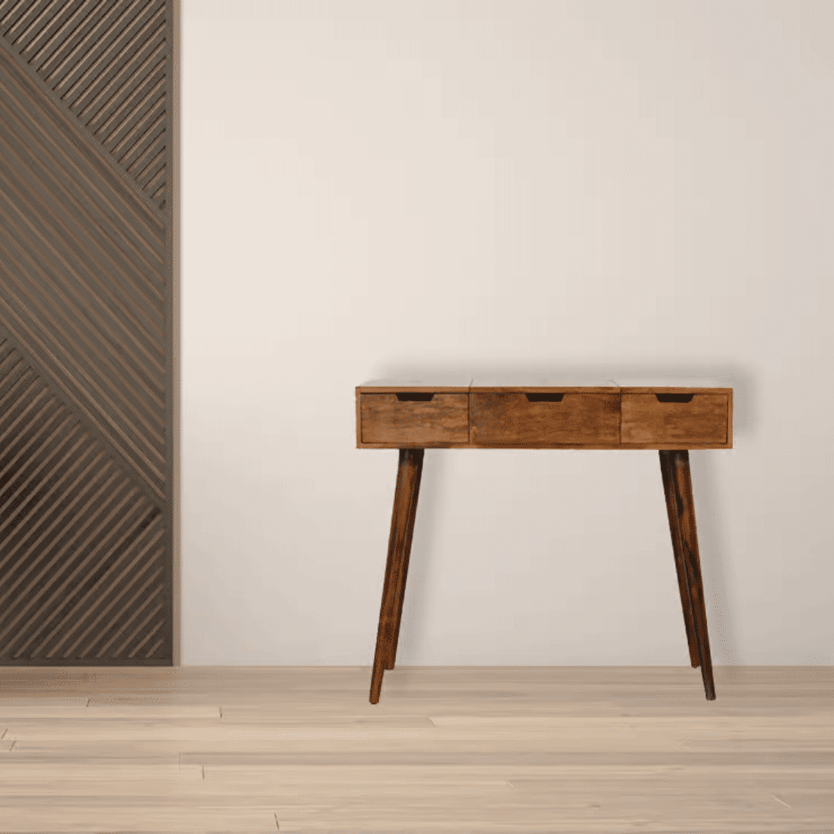 Dressing Table - RUSTICO 3 Drawer Dresser Chestnut Finish 100cm