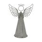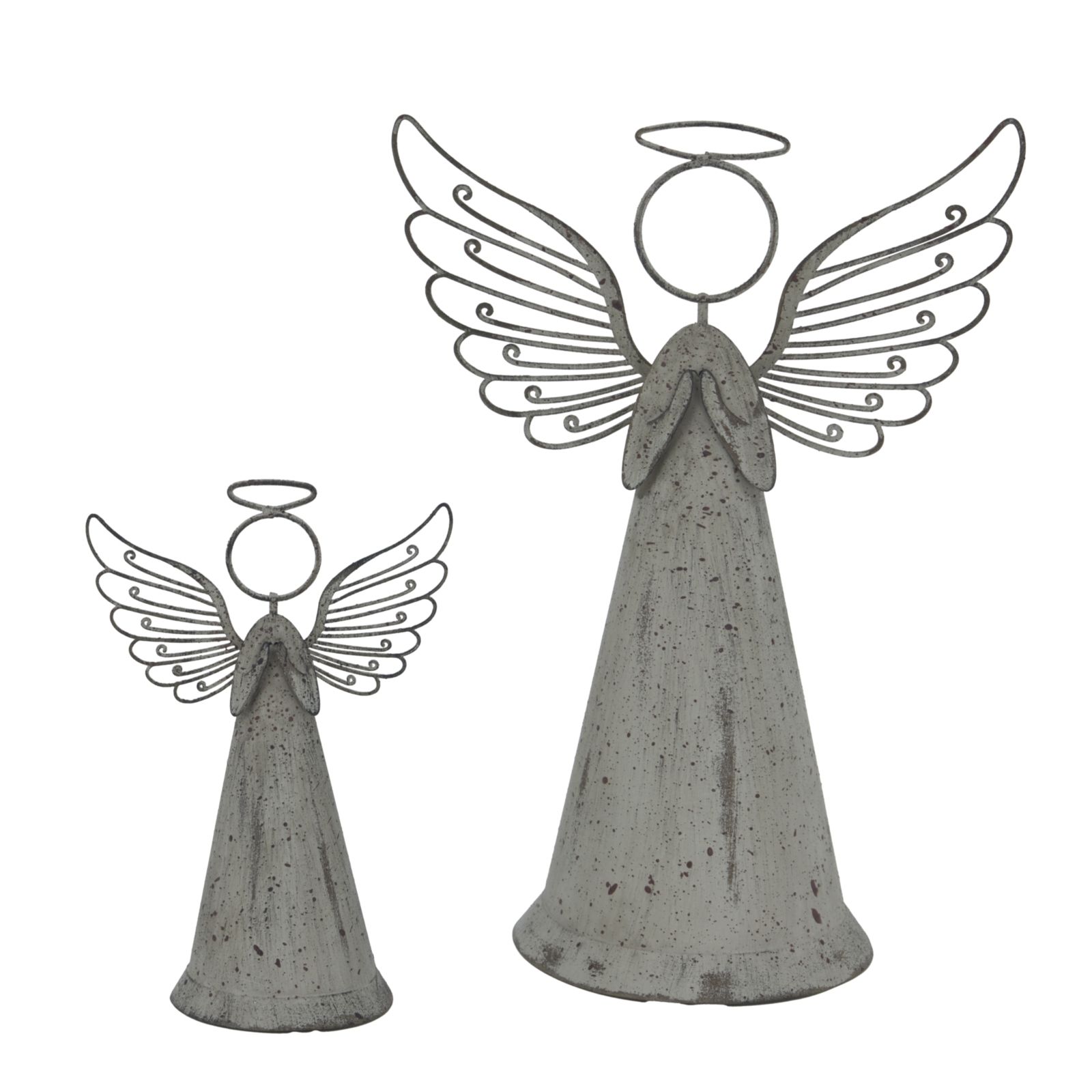 This rustic metal angel figure radiates ethereal charm with its carefully detailed design and weathered finish that creates an authentic vintage aesthetic. The substantial proportions and graceful stance of this celestial guardian make it an outstanding focal point for both indoor and outdoor spaces. The intricate metalwork showcases delicate wing patterns and flowing robes that catch and reflect light, creating subtle dimension and visual interest from every angle. This piece works brilliantly when paired with complementary metallic accessories such as antique-finish lanterns, decorative wire baskets, or industrial-style wall sconces. For seasonal displays, consider combining with battery-operated fairy lights, metallic orbs, or weathered zinc planters. The angel's neutral palette and classic design allow it to transition seamlessly between different decorative themes throughout the year, from festive winter arrangements to spring garden displays.