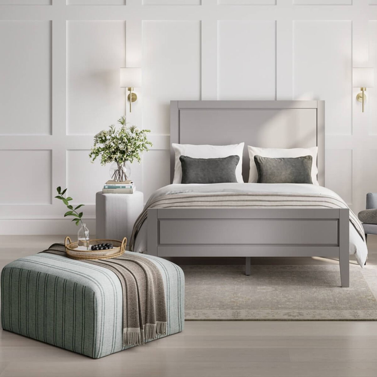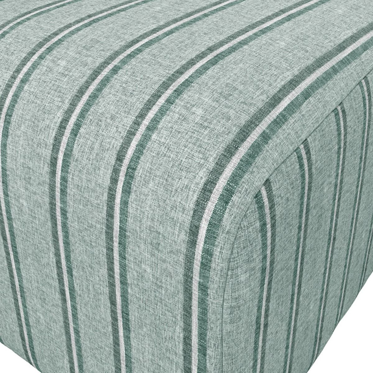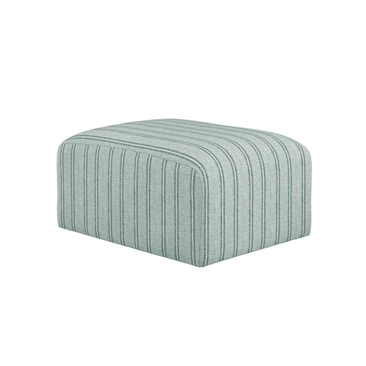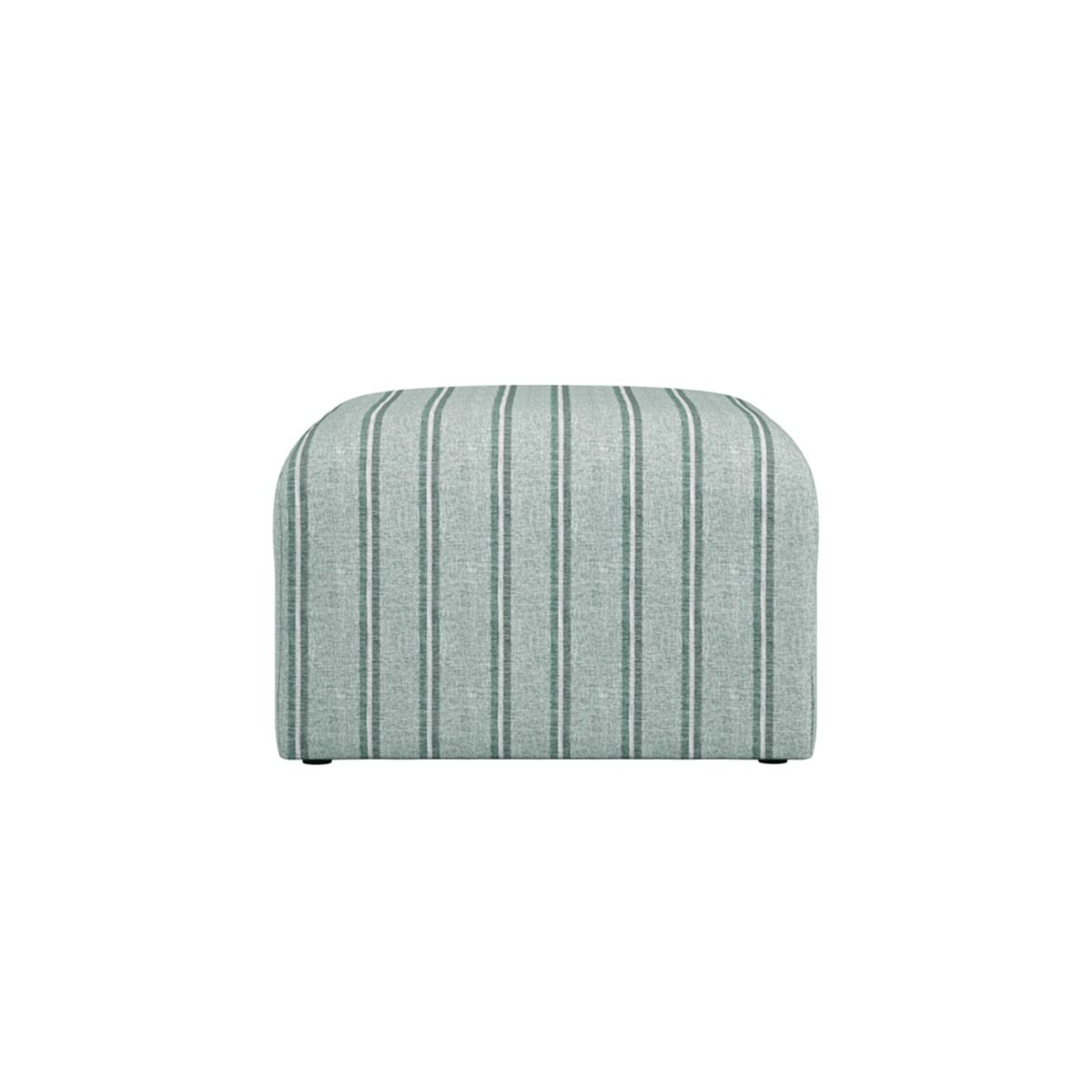 The RYLAN pouffe features curved corners and slightly textured upholstery in striped cotton-blend fabric. It offers comfortable seating with extra filling and can be styled as an accent piece in any room.