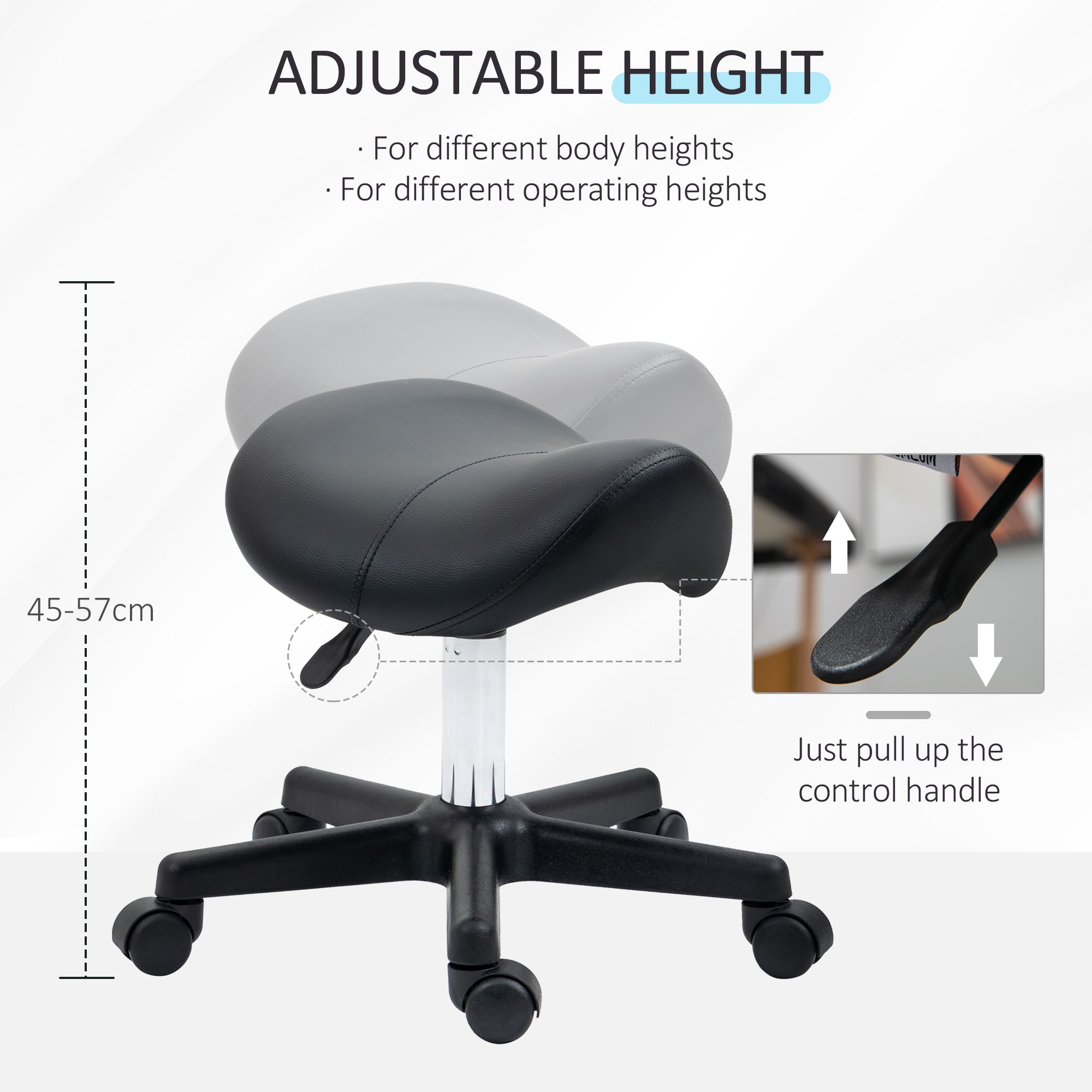 Saddle Stool, PU Leather Adjustable Rolling Salon Chair with Steel Frame for Massage, Spa, Beauty and Tattoo, Black