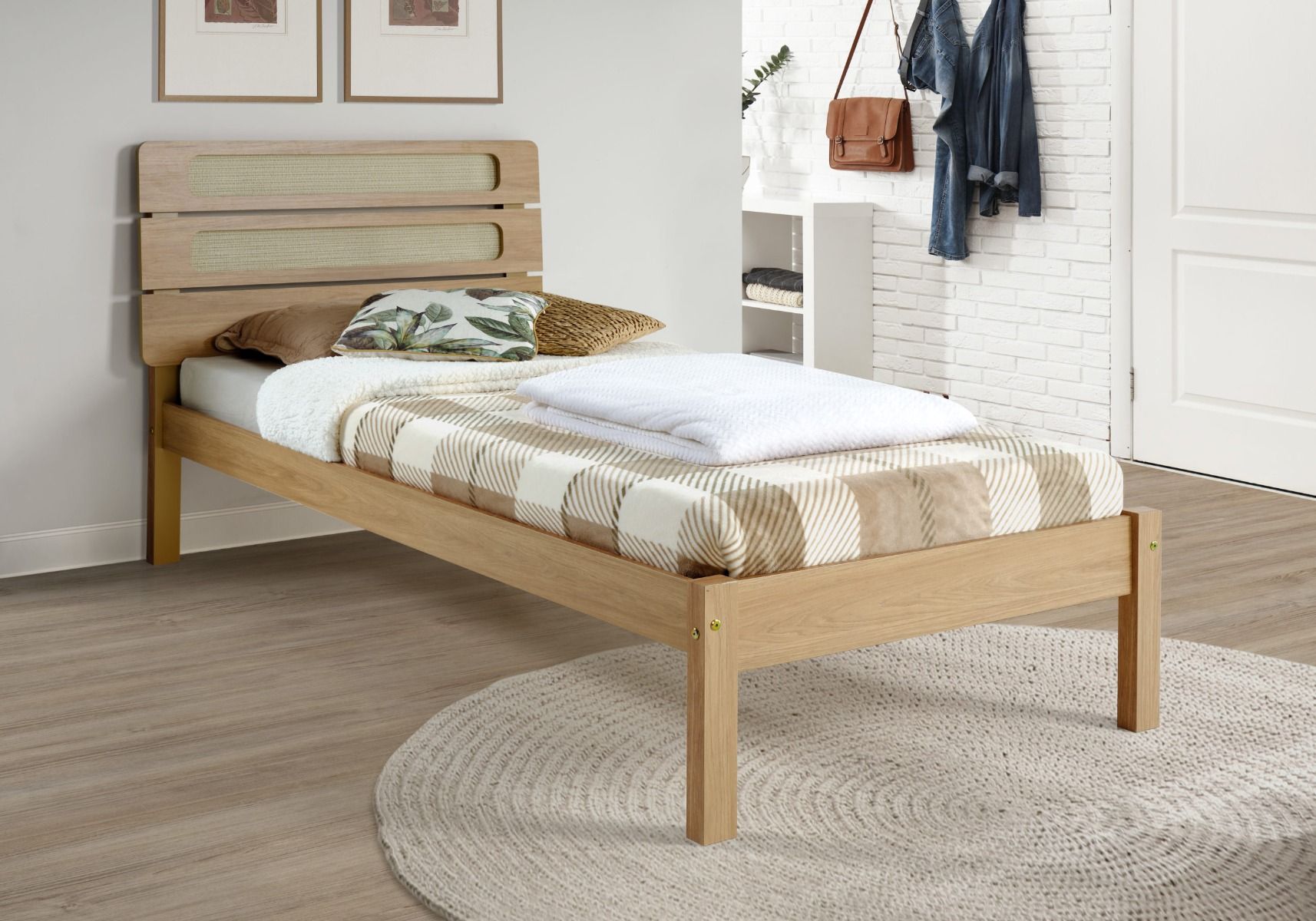 Santana 3ft Single Bed - Light Oak Rattan Effect