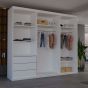 The SAPPHIRE White 250cm Sliding Wardrobe brings brightness and elegance to any large bedroom. Its mirrored centre door reflects light beautifully, while 3 smooth sliding doors offer excellent accessibility. Inside, you’ll find spacious shelves, drawers and hanging rails designed for maximum organisation. Available in modern colours, this wardrobe adds both style and high functionality.