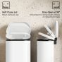 This SAVRIA 30L pedal bin is an essential for every clean and tidy kitchen. It's fitted with a silent soft-close lid so it doesn't bang and distract you; also stays up to a 90° angle for easy filling and bin changing. Made from fingerprint-resistant metal, made into a modern curved shape - a sleek addition to every home.