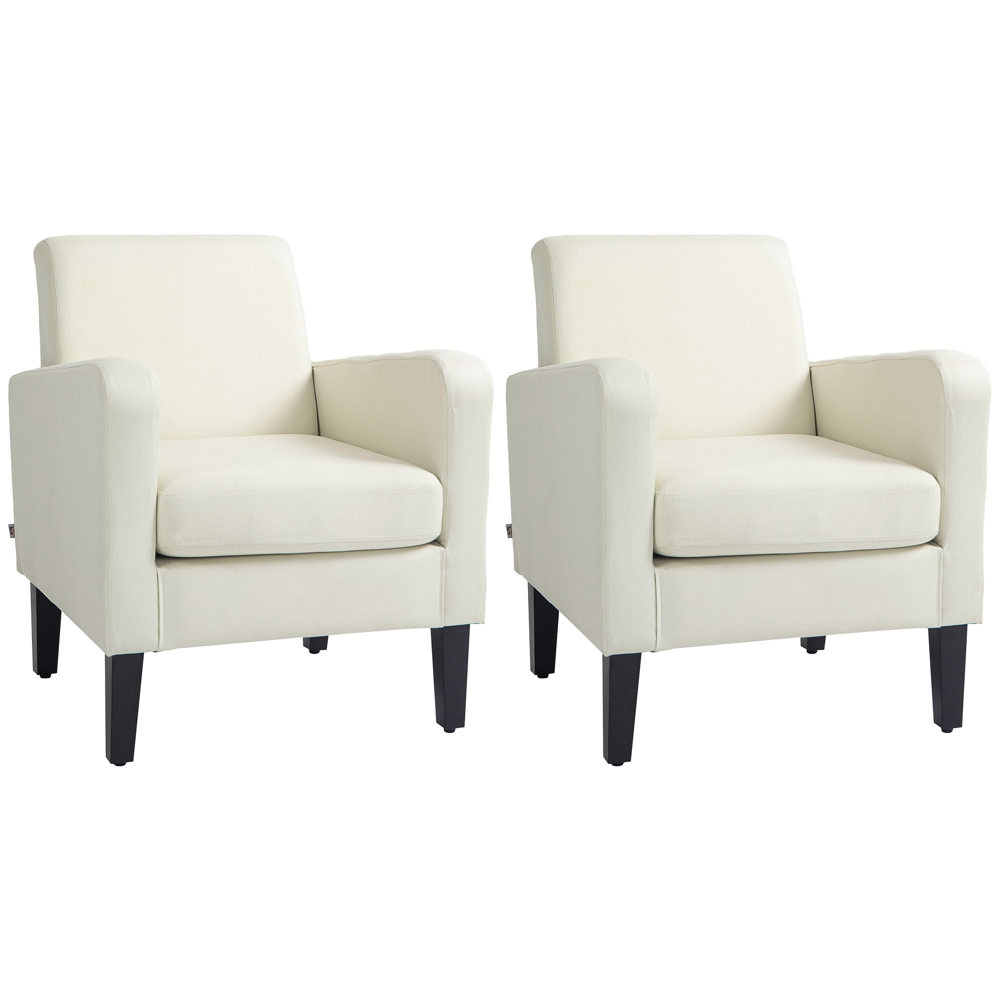 Scott 2 Pieces Modern Armchairs with Rubber Wood Legs - Cream White