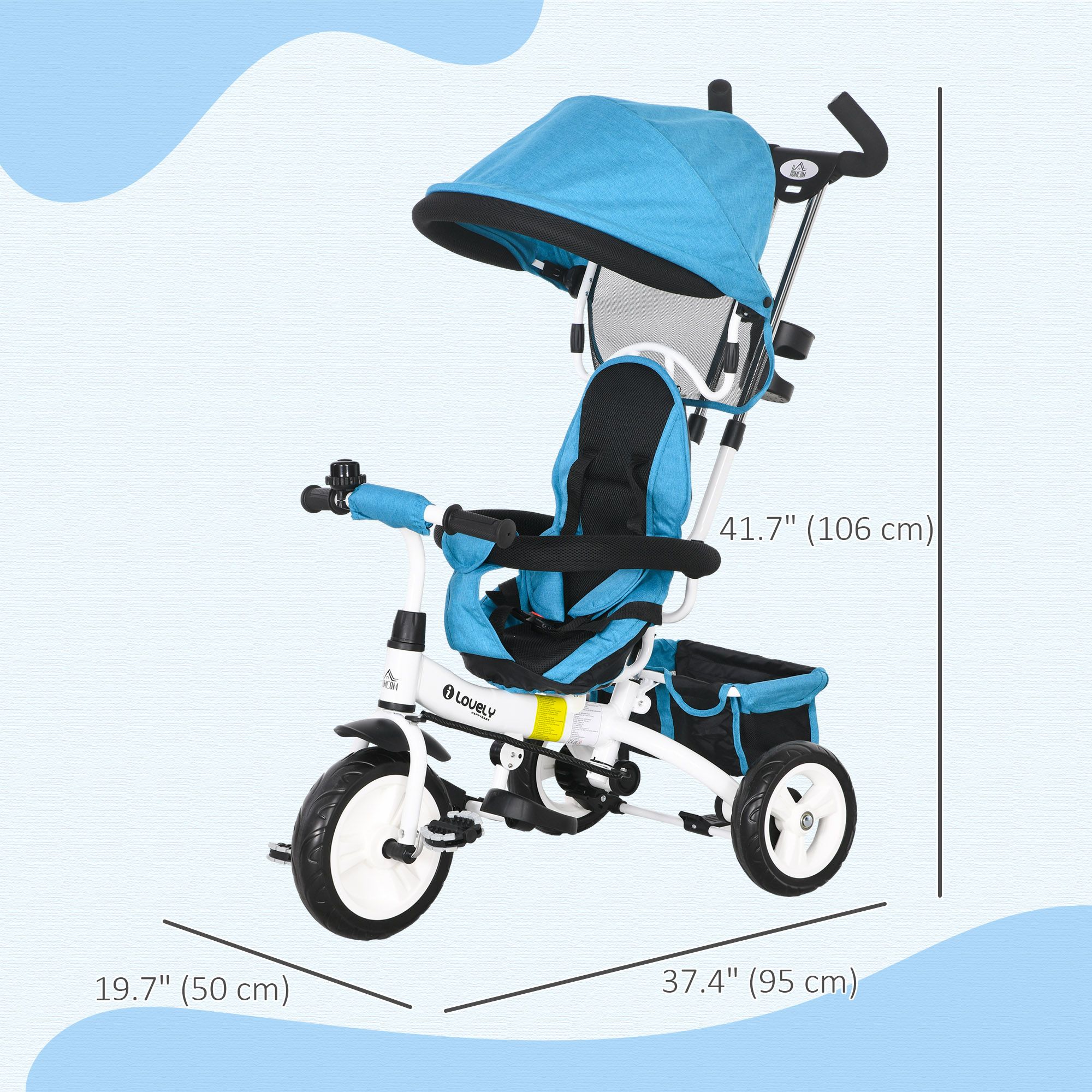 Scott 4 in 1 Kids Trike Push Bike with Push Handle and Canopy - White and Blue