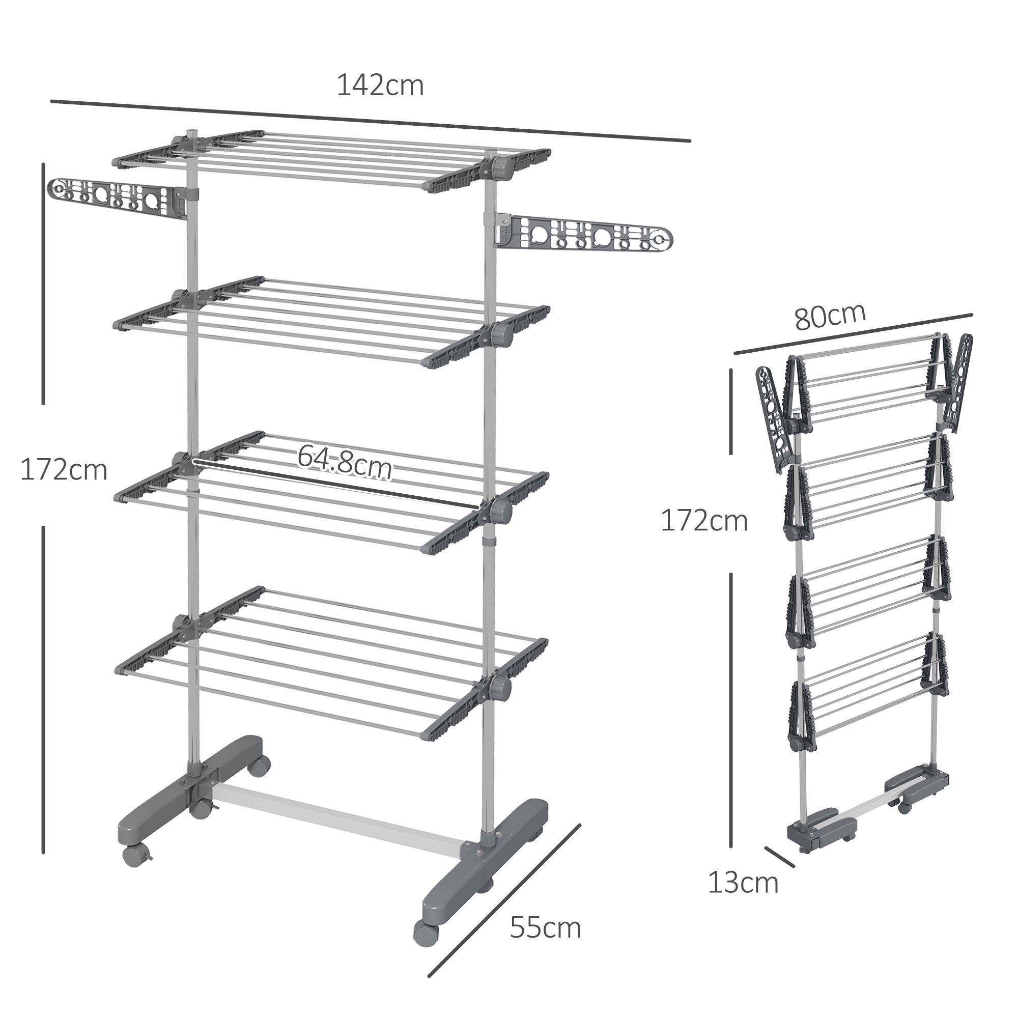 Scott 4-Tier Clothes Airer Stainless Steel Indoor Dryer - Grey