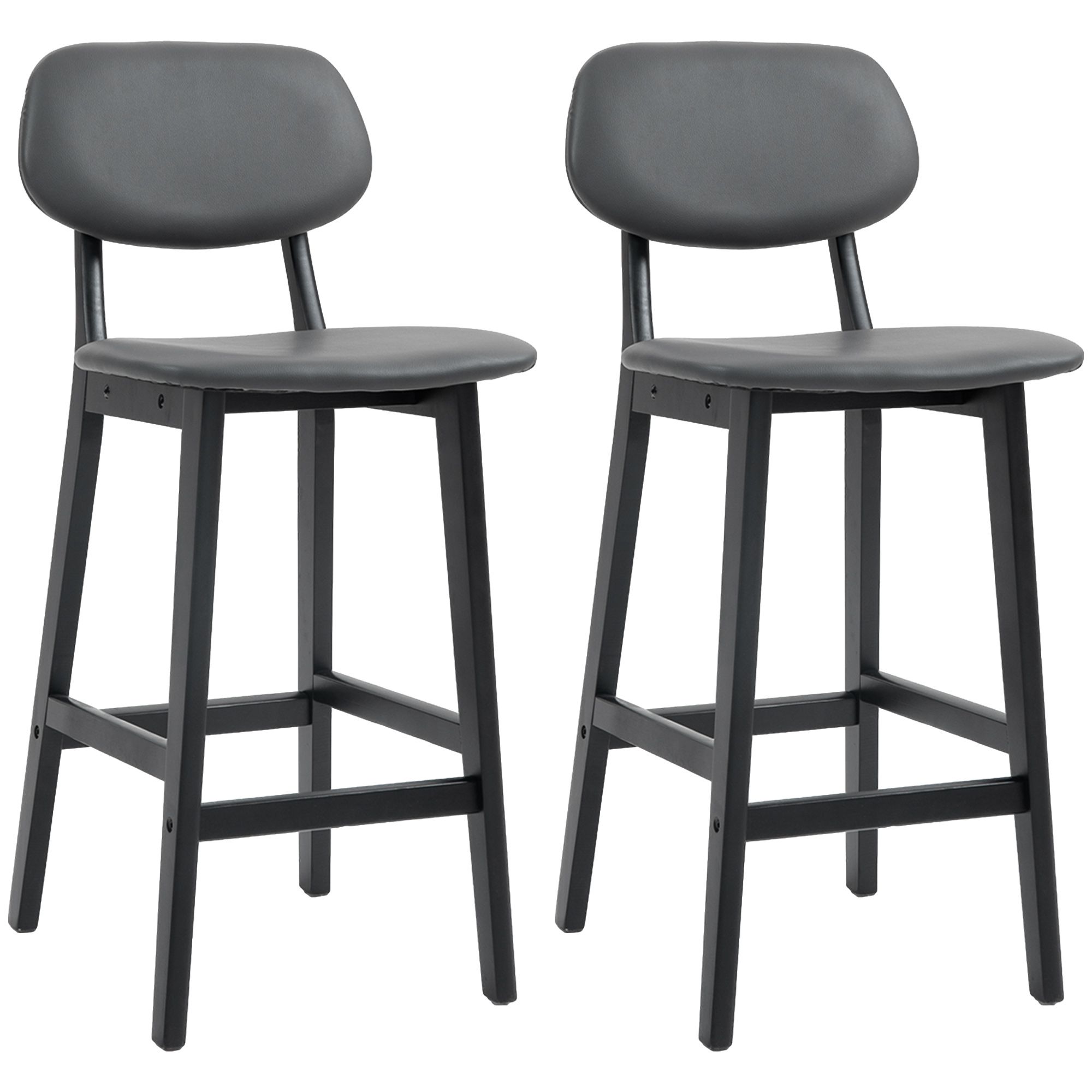 Scott Bar Stools Set of 2 with Faux Leather Upholstery - Dark Grey