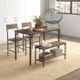 A forever-stylish focal point for family dinners and more with this Scott dining table set. Powder coated steel frames for strong cores, fitted with durable particle board tops. The wood-effect is classic and looks greats in a wealth of home interiors. The dining room set comes with a rectangular dining table, two-seater bench and two chairs. Complete with a small shelf underneath the bench seat.