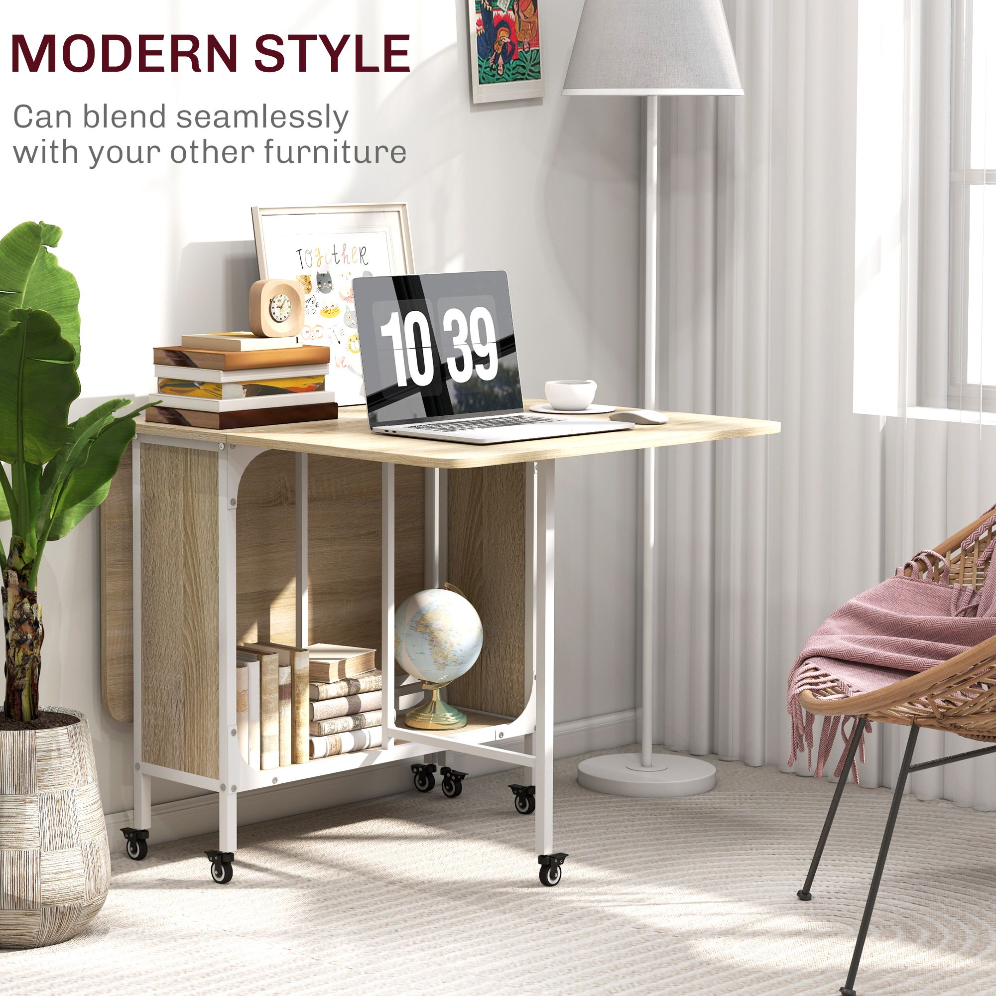 Scott Folding Kitchen Table with 6 Wheels - Natural