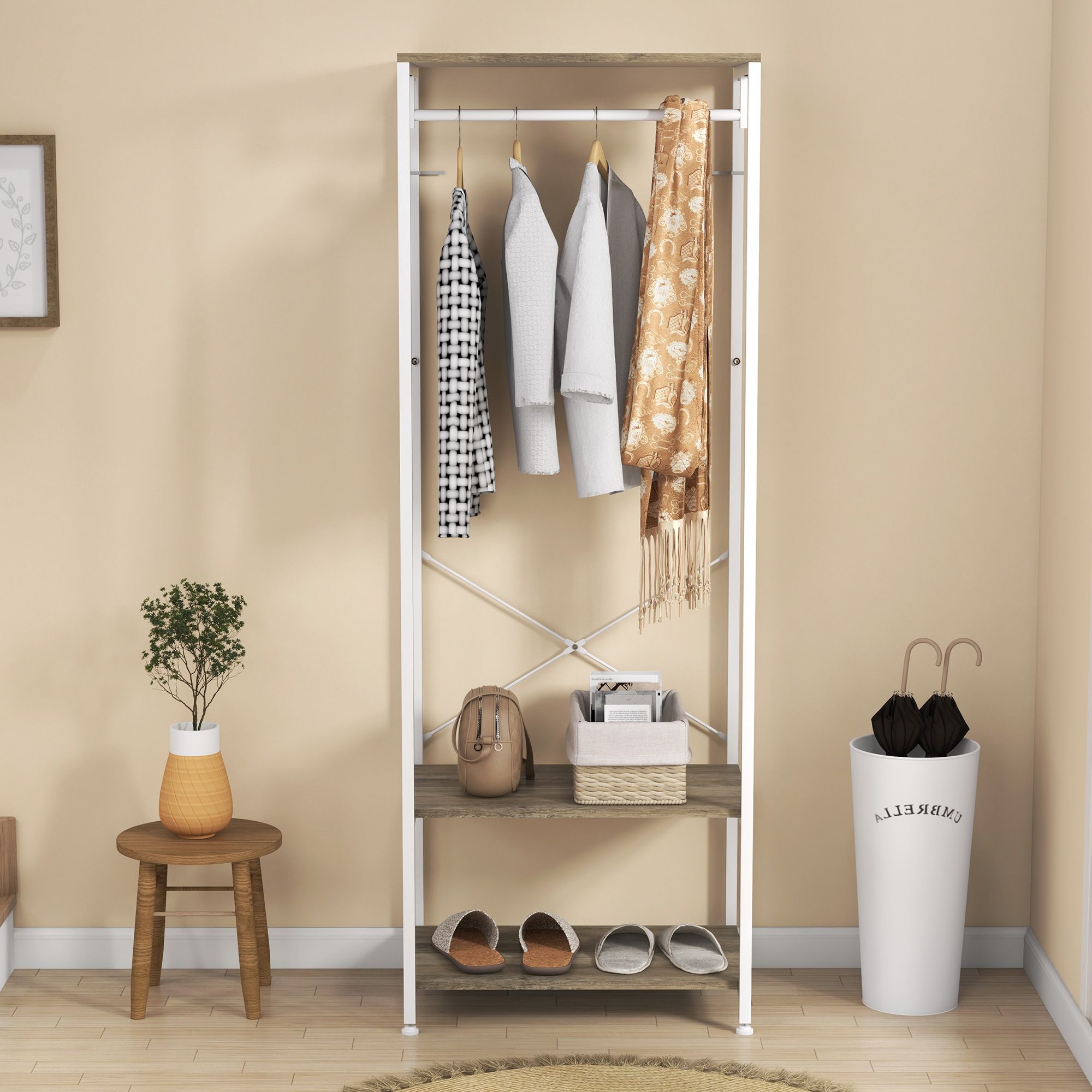 Hang outerwear and keep shoes together in one place, with this Scott duo coat rack stand. The 55.5cm rod holds many garments, whilst both shelves hold three shoe pairs each. The steel frame of this hall tree coat rack ensures a strong core, complete with anti-tipping design to safely attach to a wall.