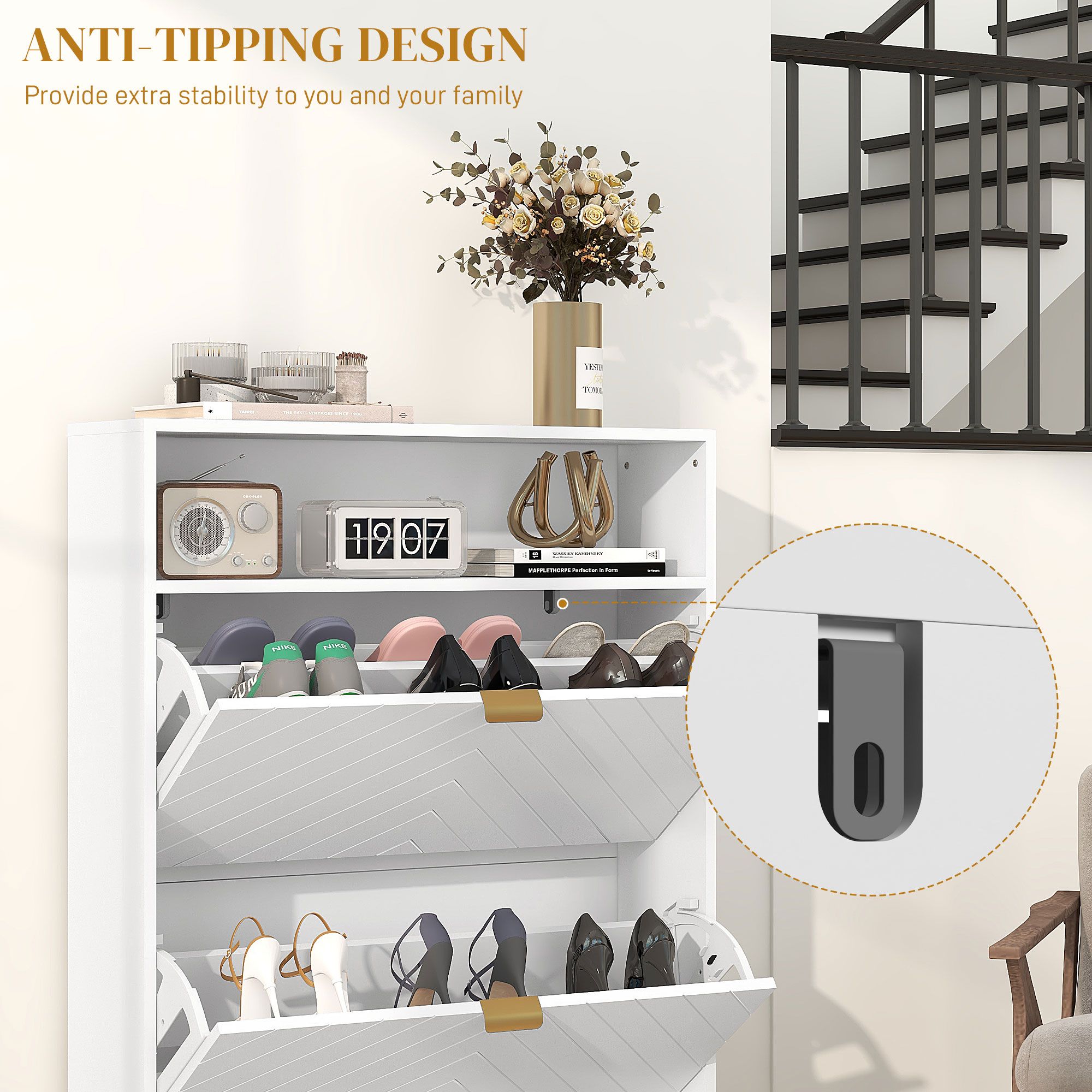 Scott Modern Shoe Storage Cabinet with 2 Flip Drawers - White
