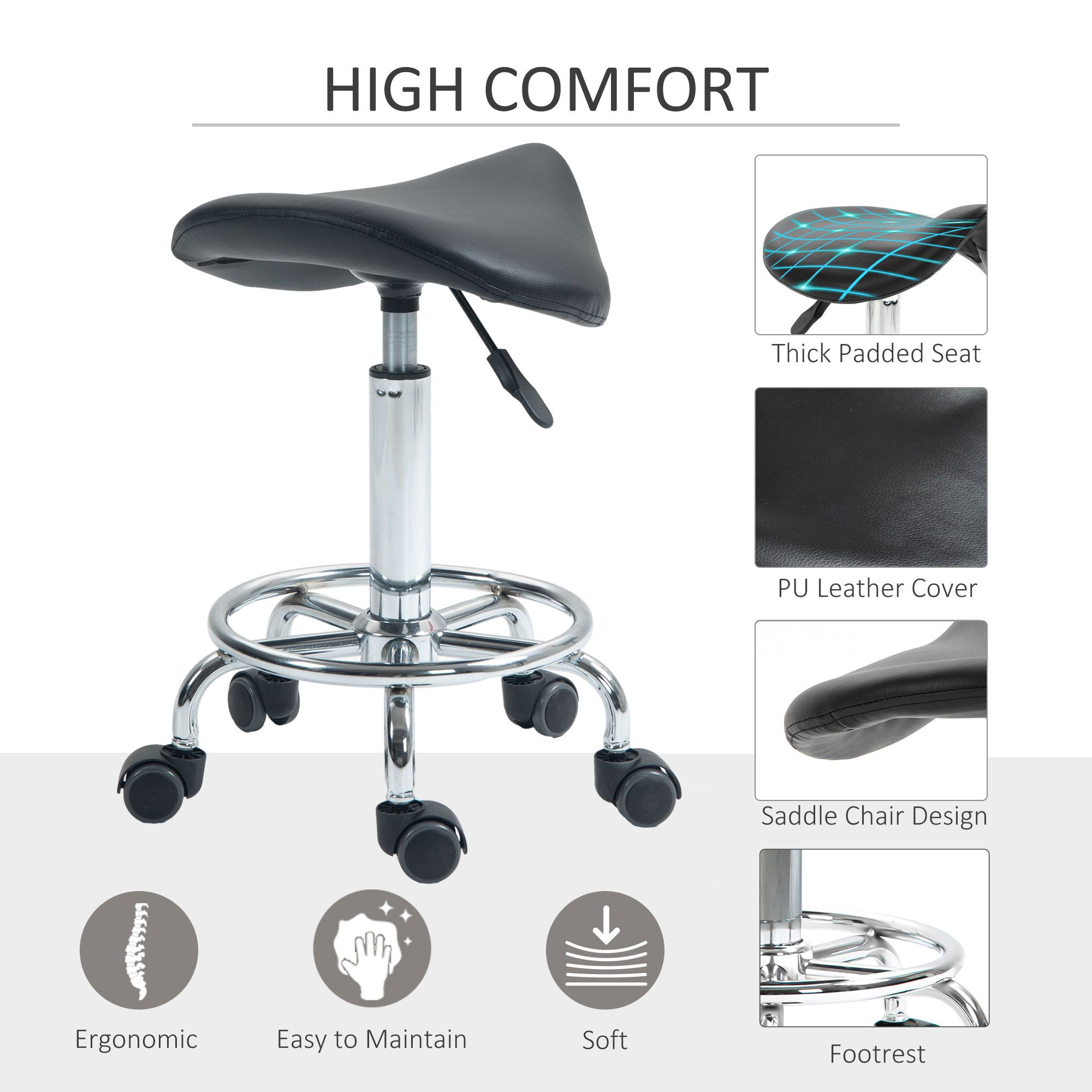Scott Rolling Saddle Stool for Massage and Beauty - Black