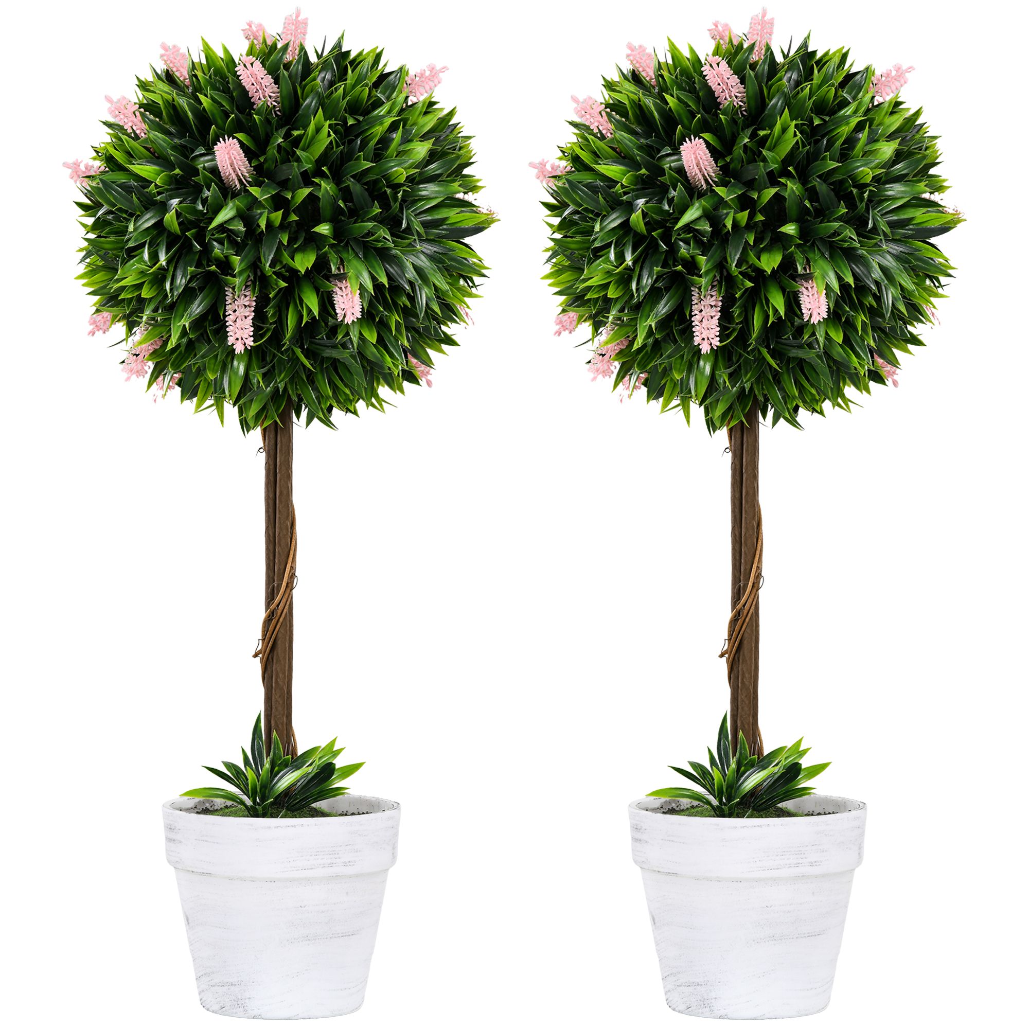Scott Set of 2 Decorative Artificial Plants Ball Trees for Indoor Outdoor - Pink
