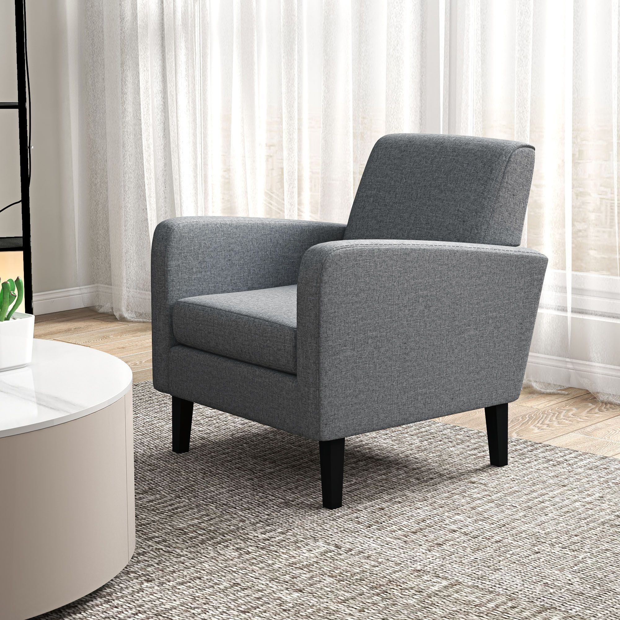 Scott Set of 2 Modern Linen Fabric Upholstery Armchairs with Rubber Wood Legs - Grey