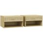 Scott Set of Two Rattan Panel Floating Bedside Tables - Wood-Effect
