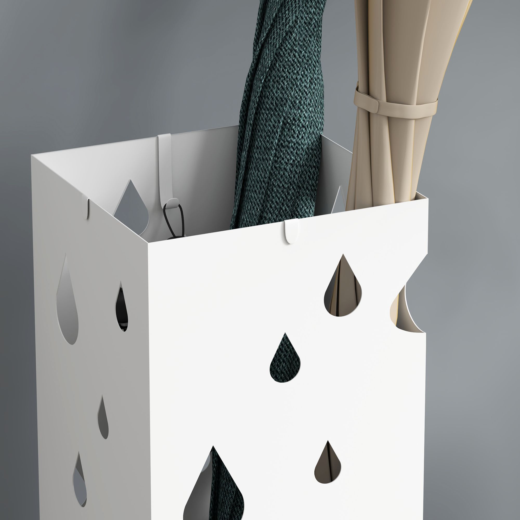 Rainy days mean umbrellas. And umbrellas can result in wet floors. Merging style and function, this Scott umbrella holder for hallway gives umbrellas their own storage place, whilst bringing in a touch of style. Made from galvanised steel, this umbrella stand is strong and resistant to rusting. The 15.5 x 15.5cm size holds two large umbrellas, with four hooks included for smaller brollies. Comes with a removable bottom tray to easily remove any liquid.