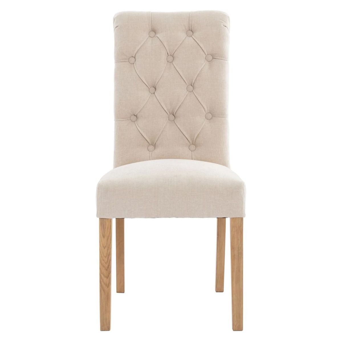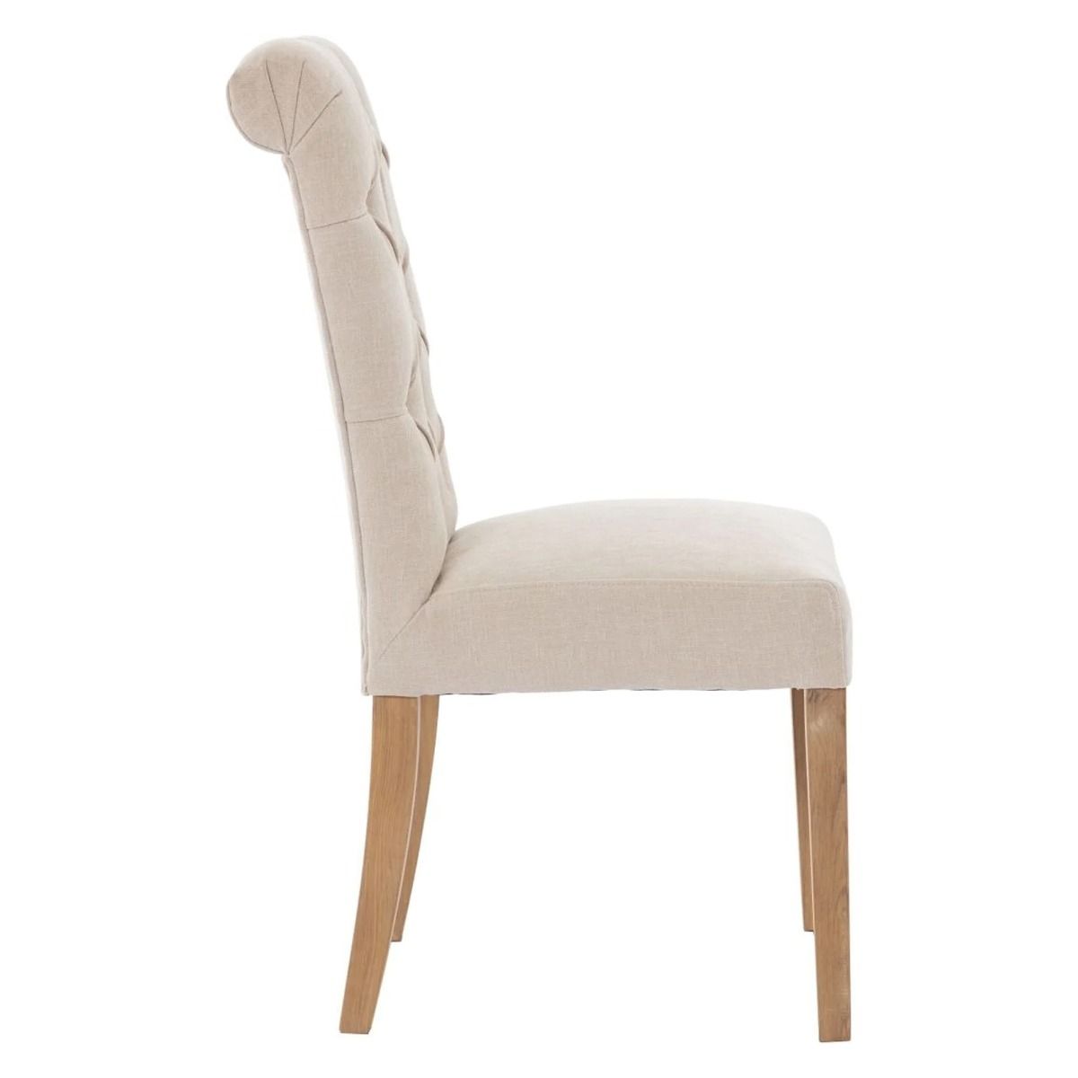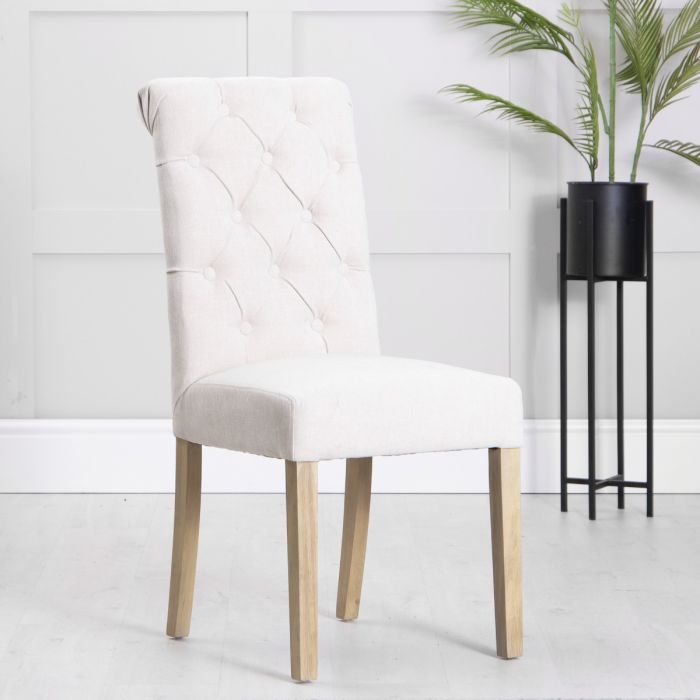 Scroll Top Button Back Dining Chair with Oak Legs - Natural