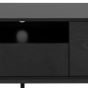 Enhance your living space with this stylish TV unit, designed with a sleek black finish. It features two doors and a drawer with an ash black rough texture, all set upon a matte black powder-coated steel base. The unit includes metal runners for smooth operation, an open compartment, and a wire hole for easy cable management. The push-to-open function and soft-close feature add convenience and a modern flair to your home entertainment setup