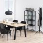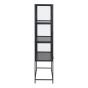 Showcase your treasures in style with this modern display cabinet, boasting a matte black steel frame and base. The top and three shelves feature an ash black melamine finish, providing a striking contrast. Two doors crafted from matte black steel and clear tempered glass offer a view into your curated collection, all while maintaining a sleek and contemporary aesthetic.