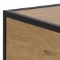 Elevate your bedroom's ambiance with this rectangular bedside table, showcasing a matt wild oak finish on the top, drawer, and shelf. The sturdy base is crafted from matte black powder-coated steel, complemented by smooth metal runners for effortless functionality. This piece merges rustic charm with industrial durability, making it an ideal addition to any modern sleeping quarters.