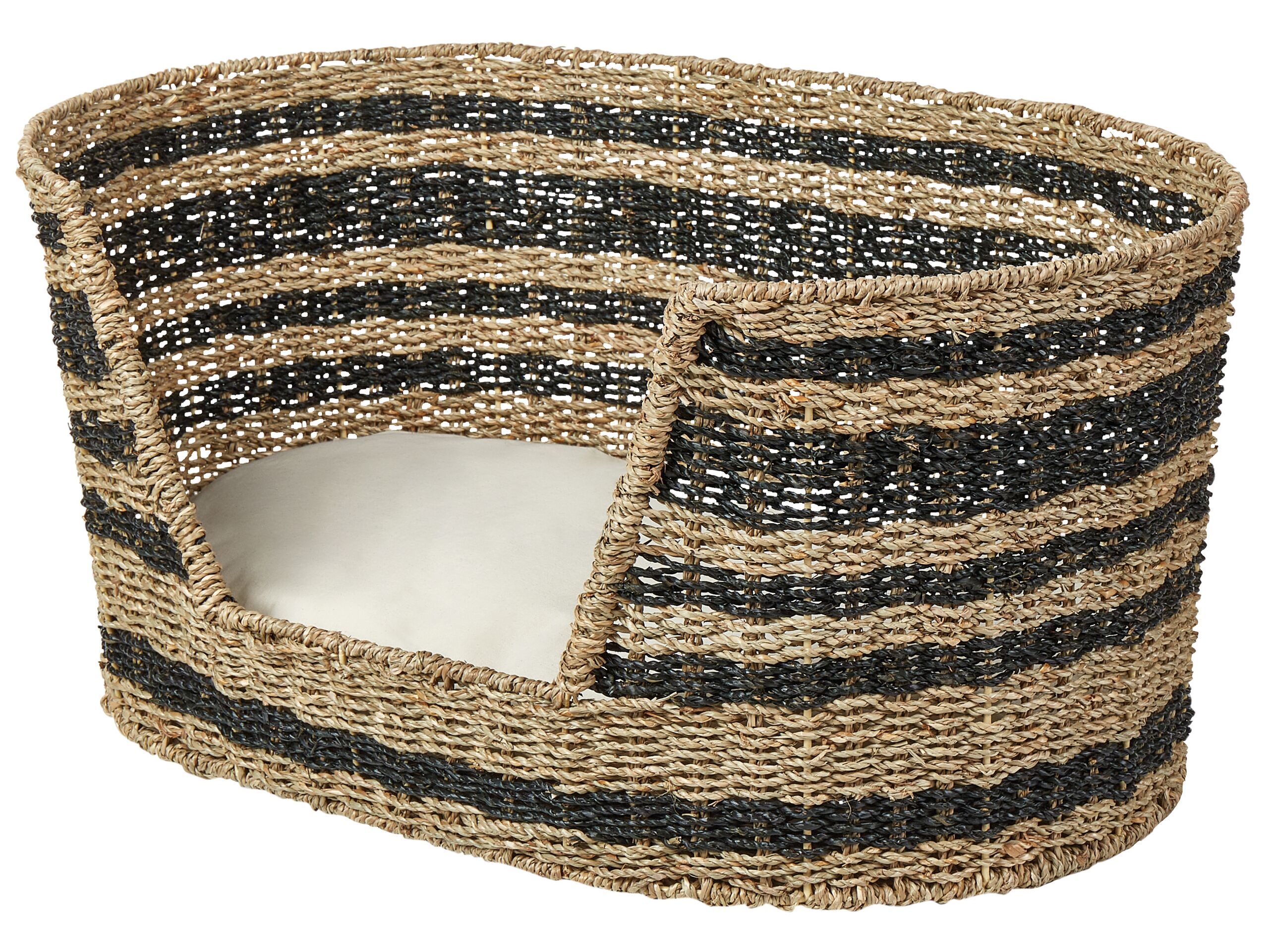 Crafted for your furry friend's comfort, this pet bed combines natural elegance with cosiness. Handmade from seagrass, this basket-style bed is a charming retreat. The soft cotton cushion ensures a plush haven for your pet to relax. Elevate their lounging experience with this eco-friendly masterpiece, where seagrass craftsmanship meets a touch of luxury for your beloved companion's serene moments. Details: Color: Natural, Beige, Black. Main material: Seagrass. Additional material: Cotton. Material Composition: 100% Cotton Weight: 2 Assembly: Does Not Require Assembly