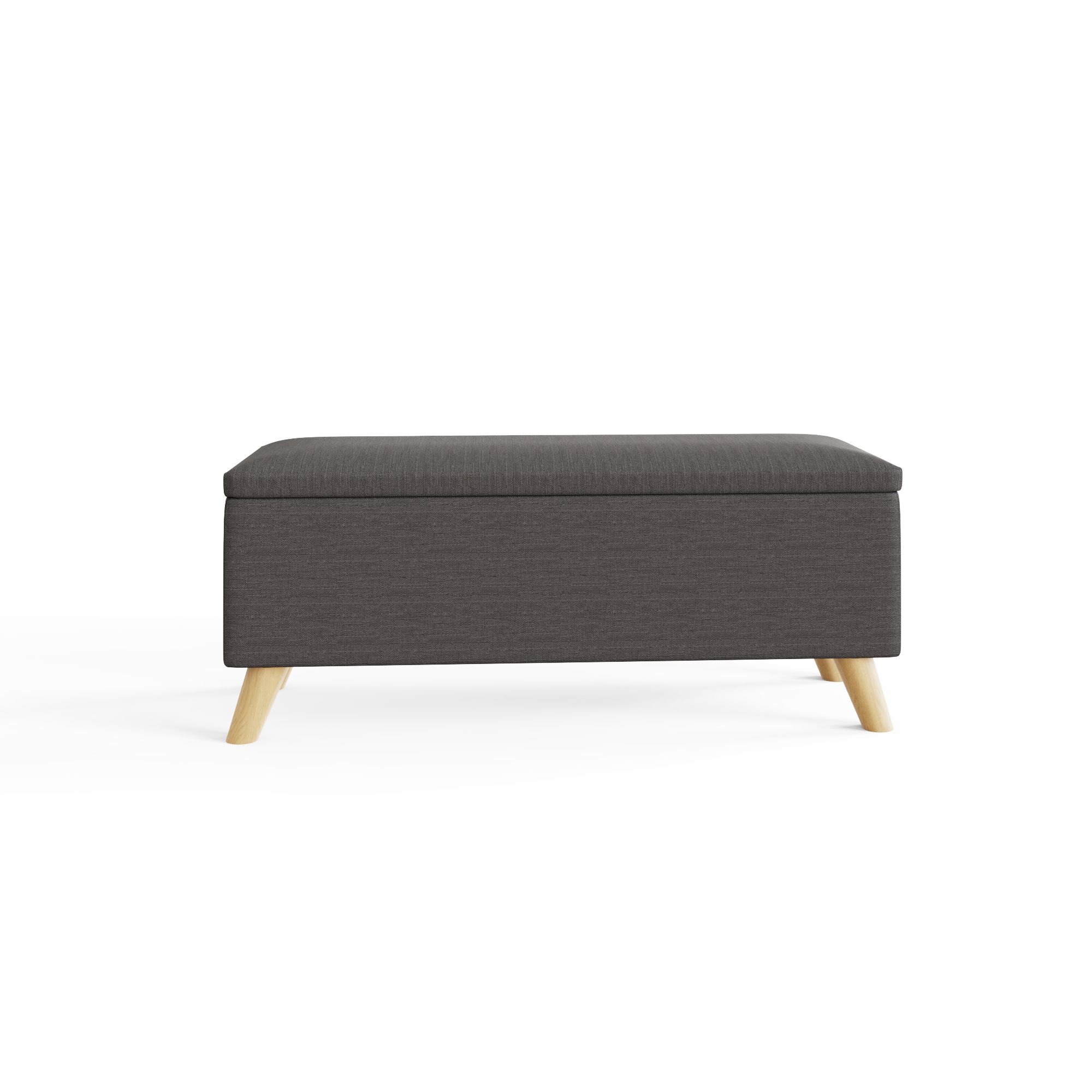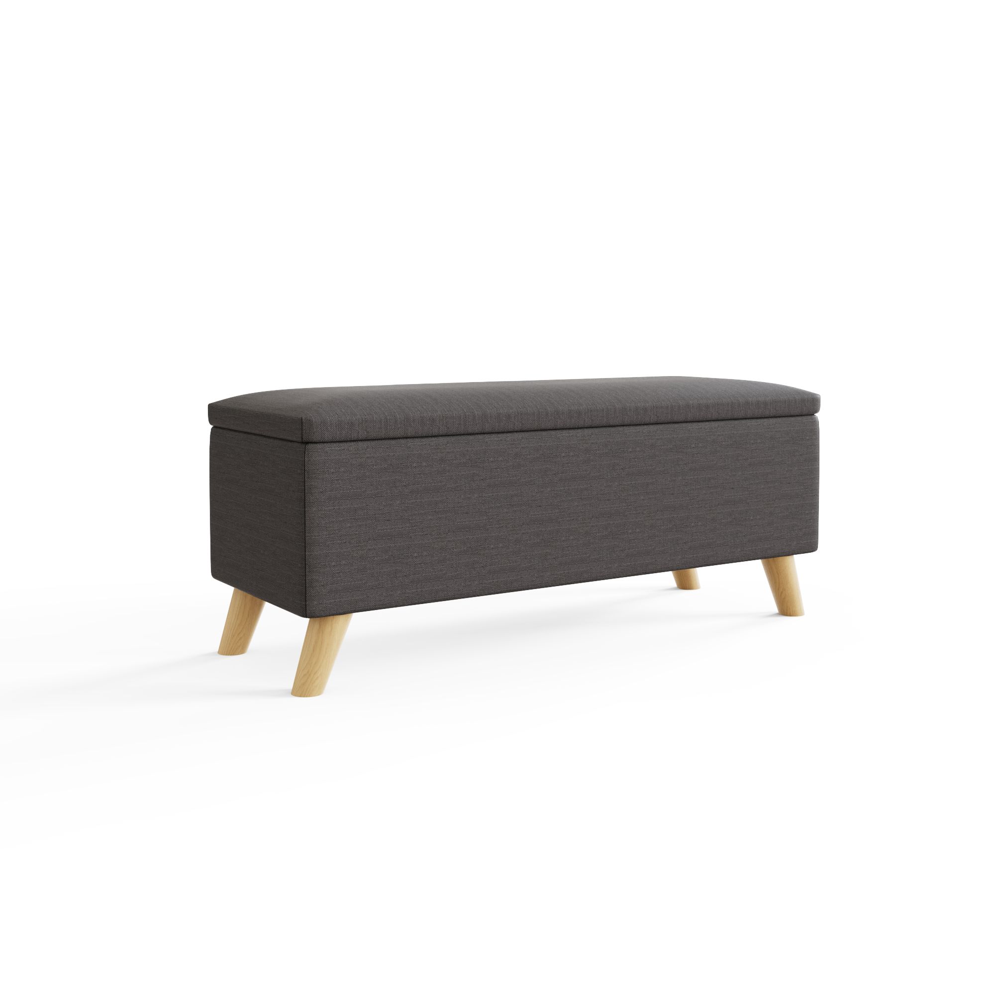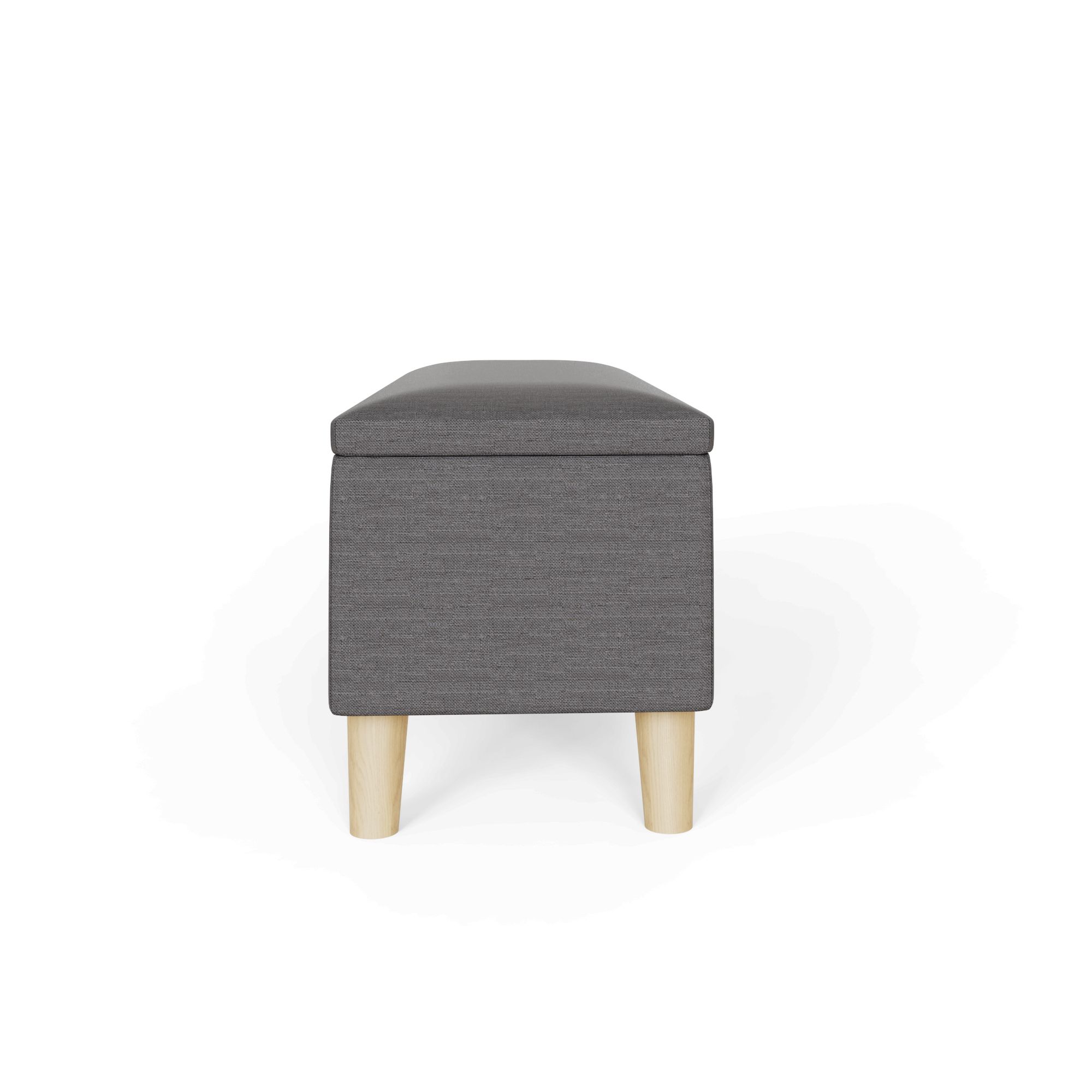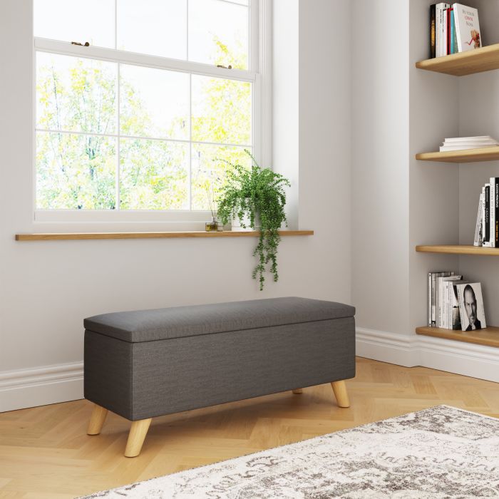 An ottoman like Secreto makes a smart addition to any home, offering a handy extra seating option that conceals invaluable storage space within. Perfect at the foot of a bed or under a window, the ottoman creates a modern vibe, thanks to the quality hopsack upholstery in a light grey or charcoal and contrasting pale wood legs. Simply lift the lid to reveal an ample 76-litre storage compartment thats ideal for storing ex-tra bedding, throws or childrens toys.
