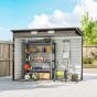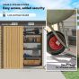 Save up to one hour: unlike traditional metal shed with vertical panels, our innovative horizontal wall panels greatly reduce assembly difficulty and increase efficiency by 25%. Enhanced stability & strength: our garden storage shed features seven support columns (the traditional ones have only two door frame columns). Ensure your outdoor belongings are protected year-round. Easy access: the double doors open wide, making it effortless to access your tools. Latch for security, with padlock and keys included. Two ventilation slots: brings air inside garden tool shed, helps prevent odour and keeps tools and equipment dry. Dimensions: 166/183 H x 249 W x 121 D cm. Inner: 227 L x 101 W cm. 2-3 people recommended to build and install. Gloves included - must be worn at all times