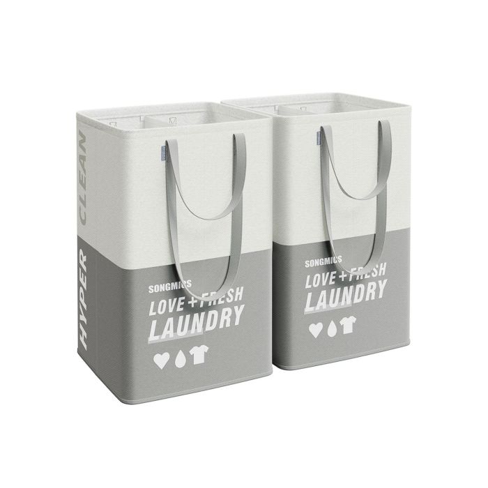 Introducing our set of two 90L Large Laundry Baskets in a soft light grey hue. These spacious baskets efficiently handle large laundry loads while adding a touch of elegance to any space. Crafted from durable materials, they ensure long-lasting performance. Simplify your laundry routine with this practical and stylish set, perfect for maintaining organization and tidiness in your home.